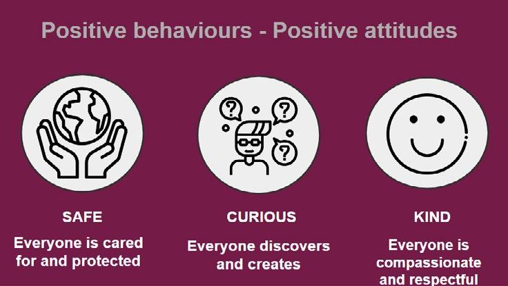 These attitudes and behaviours are grouped under our three key values; Safe, Curious and Kind.
