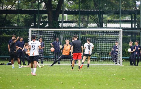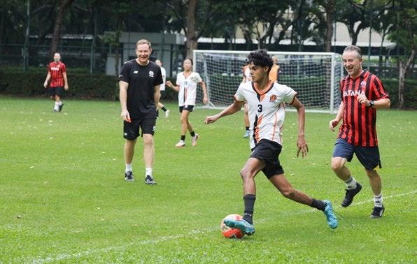The match continued, Guichai followed suit with a longrange effort that found the back of the net, showcasing the students’ growing confidence and lead. However, Mr. Stuart soon answered with a well-placed shot, following multiple attempts from Mr Owen, none successful, bringing the teachers back into the game at 2-2.