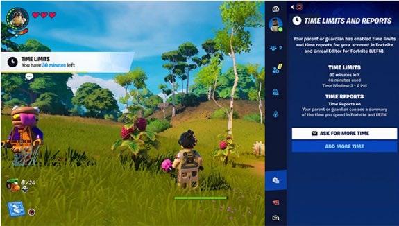 From Epic’s Account Portal, parents/guardians can sign into their child’s account to set up time windows and a total time limit. If you set up a time limit, your child will begin seeing in-game notifications when they have 30 minutes left in Fortnite and UEFN. Once your child reaches their limit, they will not be able to use Fortnite or UEFN until the next day or until a new window begins.