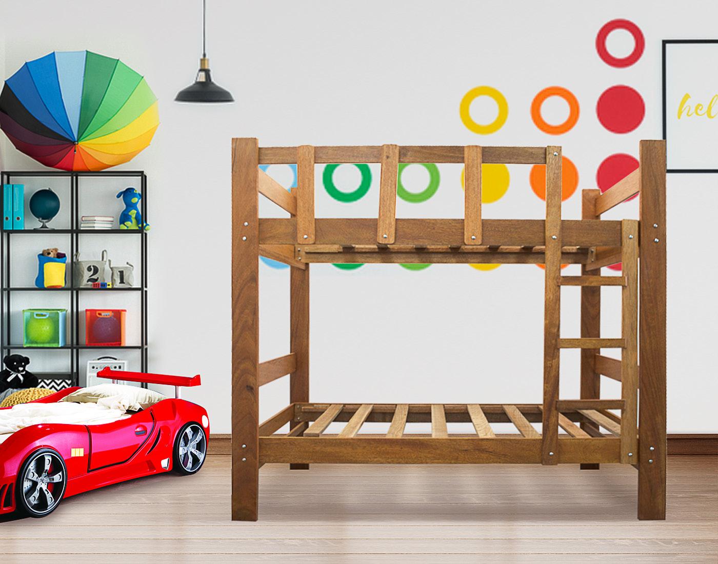 Cama elaborada en madera pino chileno Oregon, con diseño semiovalado en acabado rustico espejado con dos cajones en pura madera.