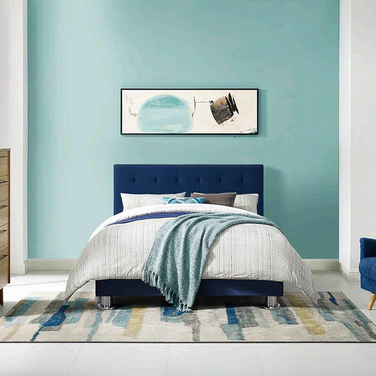 Tarima 2.5 P, Tapizada con relleno de espuma blanca de 1/2" en tela tapiz Iker con patas cromadas.