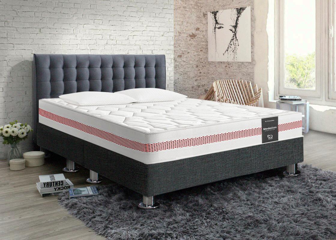 CABECERA CURIER QUEEN TARIMA TAPIZADA + COLCHÓN MEDALLÓN