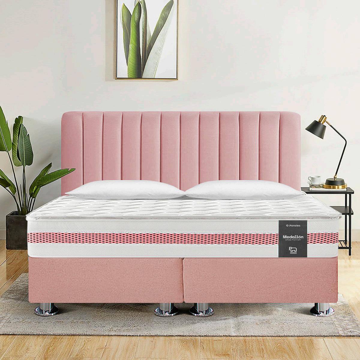 CABECERA VERLI TARIMA TAPIZADA + COLCHÓN MEDALLÓN 2,000 s/