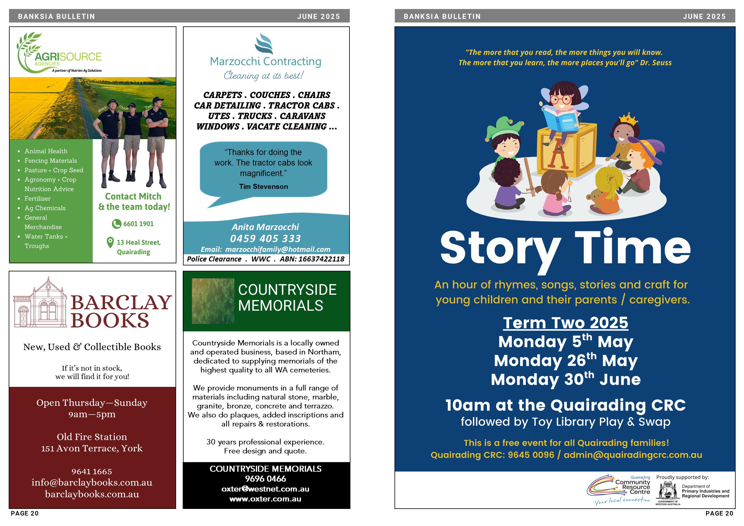 For all enquiries: Banksia Bulletin 1 Parker Street, Quairading WA 6383 (08) 9645 0096 admin@quairadingcrc.com.au