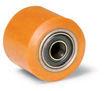 Rulli per transpallet con nucleo in acciaio tornito e rivestimento in poliuretano colato.Mozzo con cuscinetti a sfera schermati.