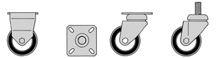 •Quattro ruote in gomma Ø 100 mm di cui due girevoli con freno e due fisse.