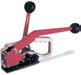 Tendireggia con tensionamento manuale e saldatura a batteria adatti per reggetta in plastica poliestere.Robusti e collaudati consentono di ottenere le stes-