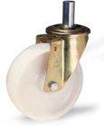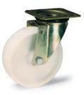 Ruote monolitiche in poliammide (nylon 6) di prima scelta.Mozzo con foro passante.Supporti per carichi medi con sfere in acciaio temperato e finitura zinco pas-
