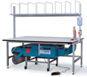 Banchi da lavoro smontabili costruiti con piano in lamiera d’acciaio con spessore 2,5 mm. Cassetti dotati di serratura.