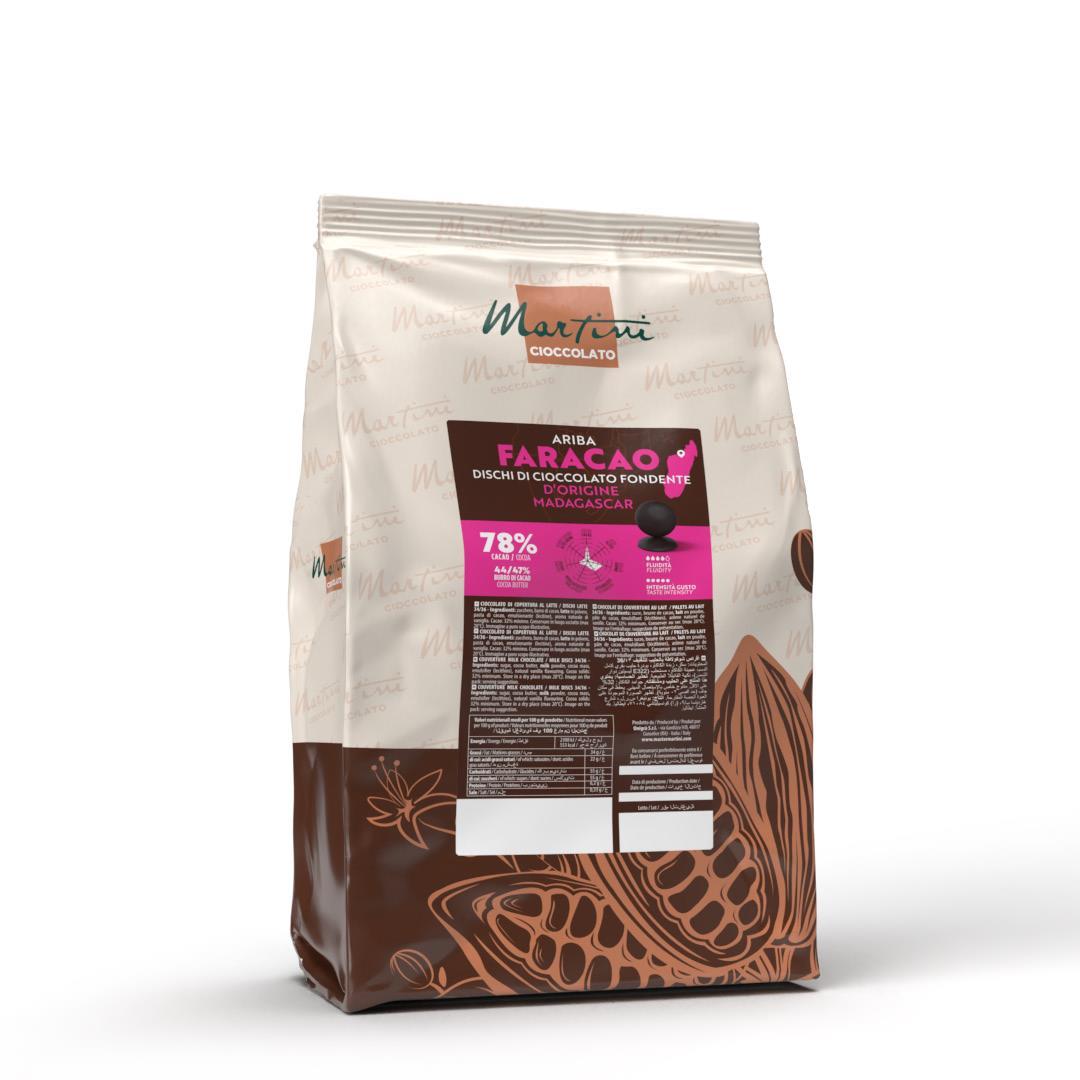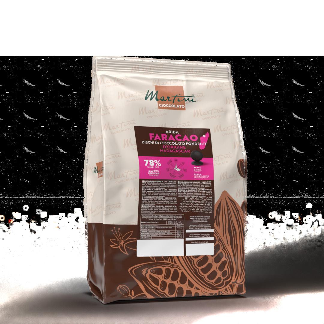 A mitologia malgaxe está cheia de histórias e lendas. Entre as suas muitas divindades está Faravari, a deusa da água – um recurso fundamental para os habitantes, a flora e a fauna da ilha. Das valiosas plantações de cacau de Madagascar, irregadas com a água doada pela divindade, nasce Faracao: chocolate adocicado e muito aromático, caracterizado por notas tostadas com notas de frutas vermelhas e especiarias. O sabor intenso do cacau é equilibrado por uma adstringência não excessiva que permite a este chocolate liberrar o seu bouquet muito tempo após a degustação.