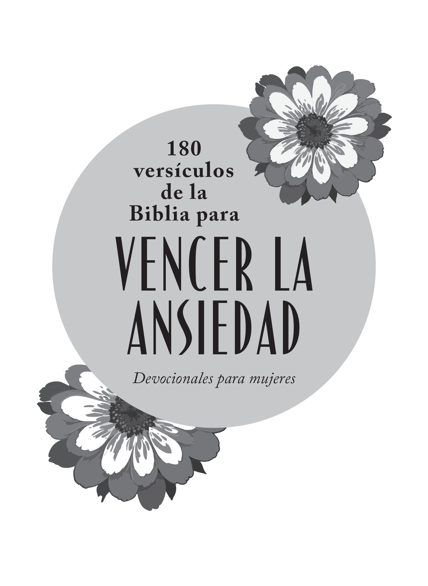 Las iglesias y otras entidades con intereses no comerciales pueden reproducir parte de este libro sin autorización escrita expresa de Barbour Español, siempre que el texto no exceda las 500 palabras y que no sea material citado de otra editorial. Cuando se reproduzca el texto de este libro, deben incluirse las siguientes líneas de crédito: «De 180 versículos de la Biblia para vencer la ansiedad, publicado por Barbour Español. Usado con permiso».