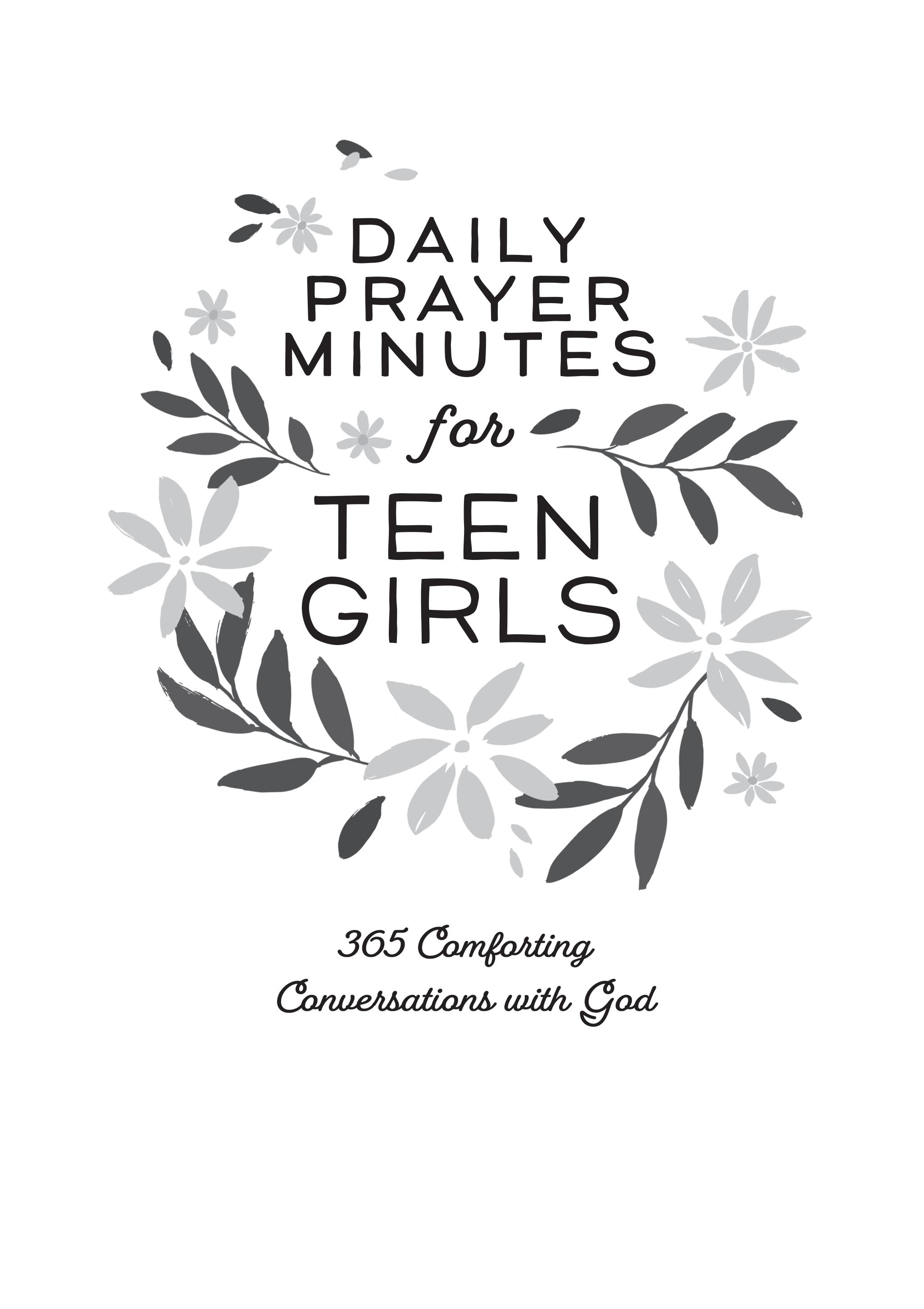 Churches and other noncommercial interests may reproduce portions of this book without the express written permission of Barbour Publishing, provided that the text does not exceed 500 words or 5 percent of the entire book, whichever is less, and that the text is not material quoted from another publisher. When reproducing text from this book, include the following credit line: “From Daily Prayer Minutes for Teen Girls: 365 Comforting Conversations with God, published by Barbour Publishing, Inc. Used by permission.”
