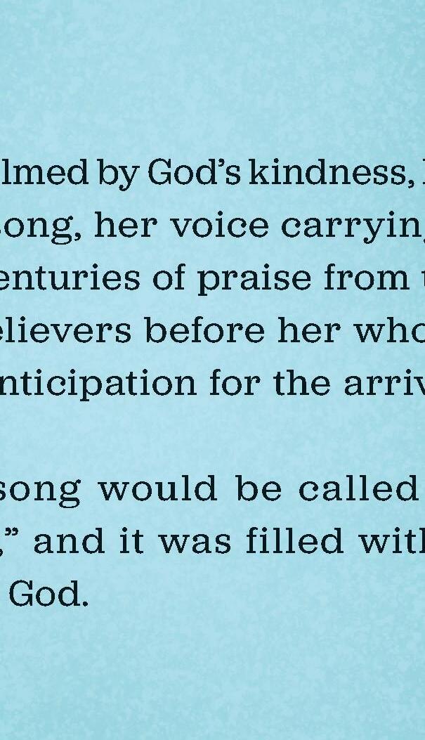 Overwhelmed by God’s kindness, Mary burst into song, her voice carrying the weight of centuries of praise from thousands of believers before her who had waited in anticipation for the arrival of Mary’s song would be called “the Magnificat,” and it was filled with the promises of God.