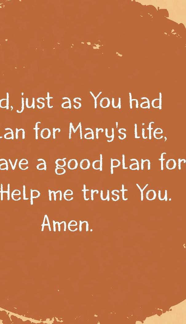 God, just as You had a plan for Mary’s life, You have a good plan for me. Help me trust You.