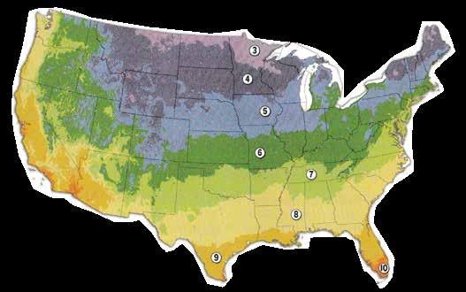 Plant hardiness is very important to growing success. Check the map to determine which hardiness zone you live in. You’ll find zone designations at the end of many of the plant descriptions printed in this catalog.