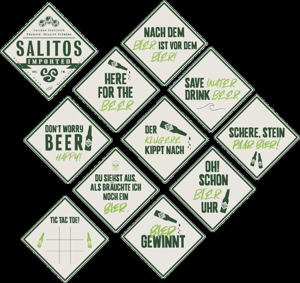 Unsere SALITOS Bierdeckel gibt es in 10 einzigartigen Designs – stylisch, auffällig und ein echter Hingucker, der dein Getränk perfekt in Szene setzt, ohne den Tisch zu verschmutzen.