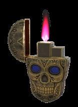 Das SALITOS Sturmfeuerzeug präsentiert sich in einem außergewöhnlichen Candy Skull Design, gefertigt aus einer hochwertigen Zinklegierung. Mit seinem detailreichen, auf allen vier Seiten geprägten Design zieht es alle Blicke auf sich. Die besondere Note erhalten die Feuerzeuge durch die Einbettung von farbigen Steinen in Rot, Grün oder Blau, die als Augen des Totenkopfdesigns dienen und dem Ganzen einen lebendigen Ausdruck verleihen.