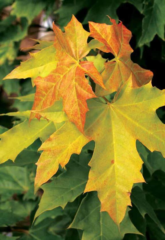 From late spring through summer, this species and particularly this cultivar, has a beautiful bright green leaf reminiscent in shape of a maple and which never seems to tire from the stresses of the summer sun! It grows with a pyramidal shape, maturing to a large specimen so is not suitable for small gardens.
