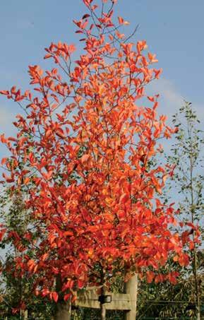 orange/red in big clusters which are very popular with the birds. The autumn also provides a great show of colour with all different shades of orange to red. Barcham often grow it in a multi-stem form more commonly than a single stem. Although not edible off the tree you can make Rowan jelly from the fruit. This tree is suitable for larger gardens.