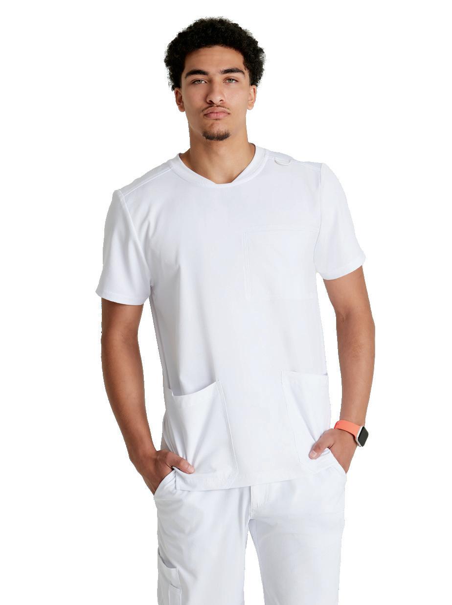 SKT147 Dignity Tuck-In Top 1-pocket, V-neck with contrast rib, front yoke seam with badge loop, single chest pocket, highlow hem tuck-in top