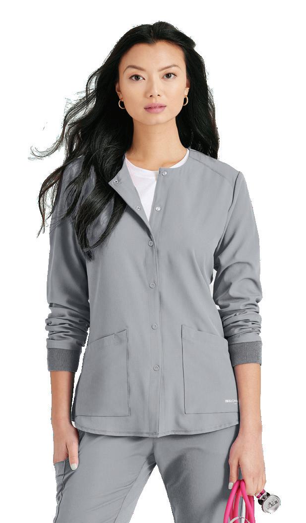 SKW919 Contour Warm-Up NEW 3-pocket banded collar, top-entry waist pockets, inside left front pocket, self waistband, encased elastic cuffs, zip-front warm-up