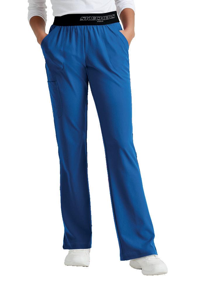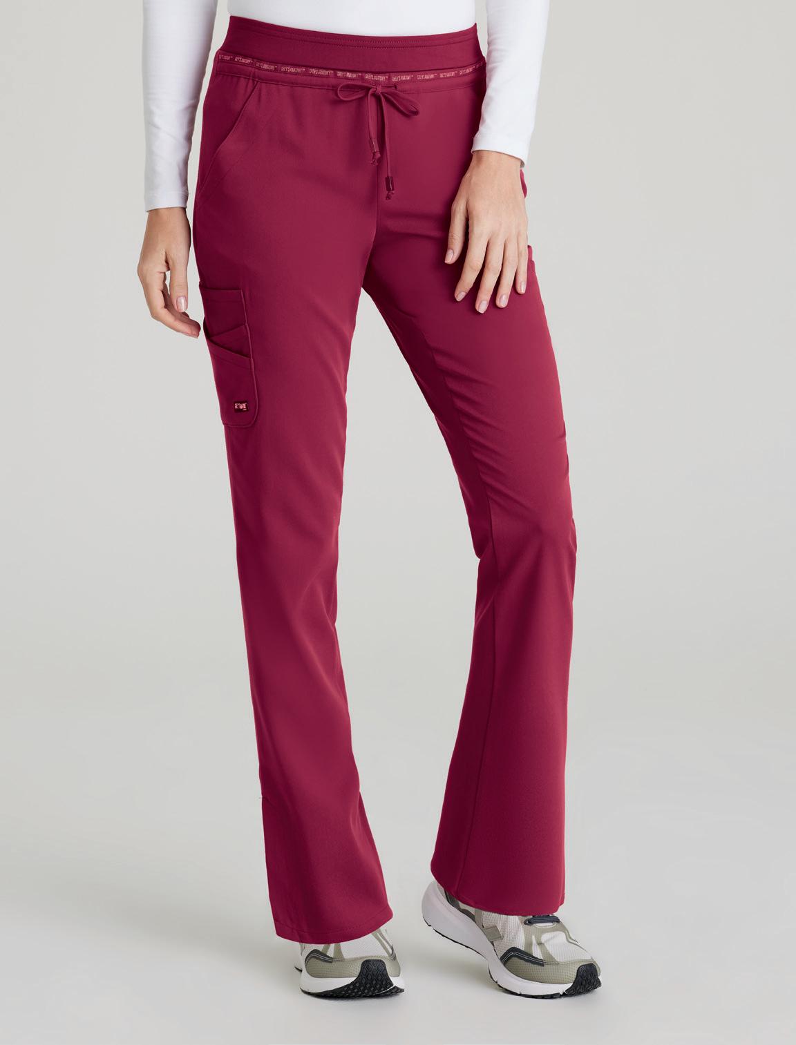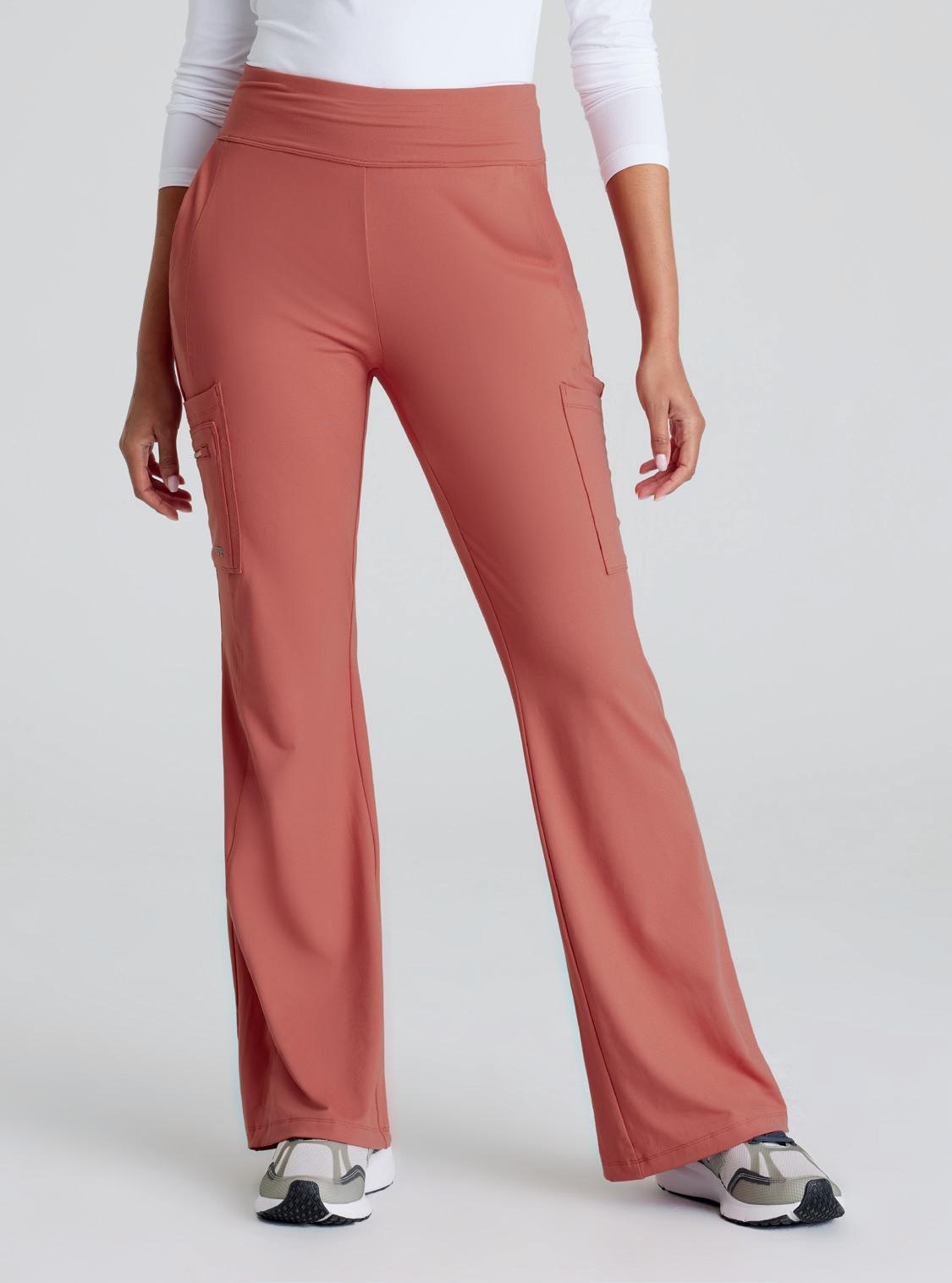4-pocket flat waistband with drawcord and inside logo elastic, angled zipper front pockets, patch cargo pocket with pen slot, back patch pocket, fit & flare pant