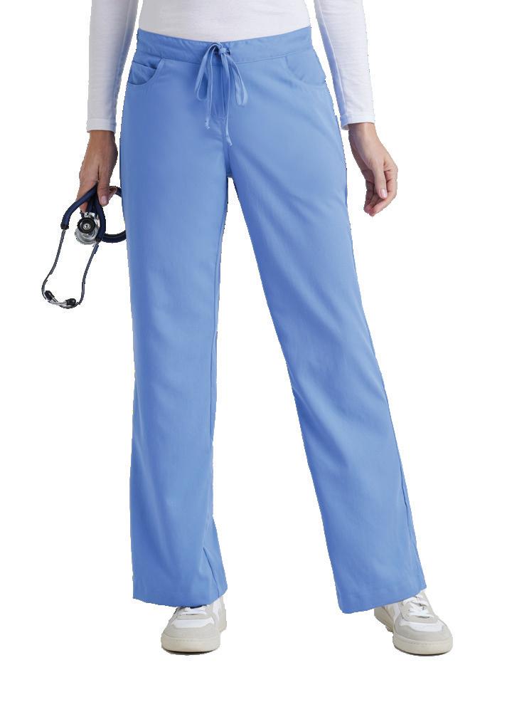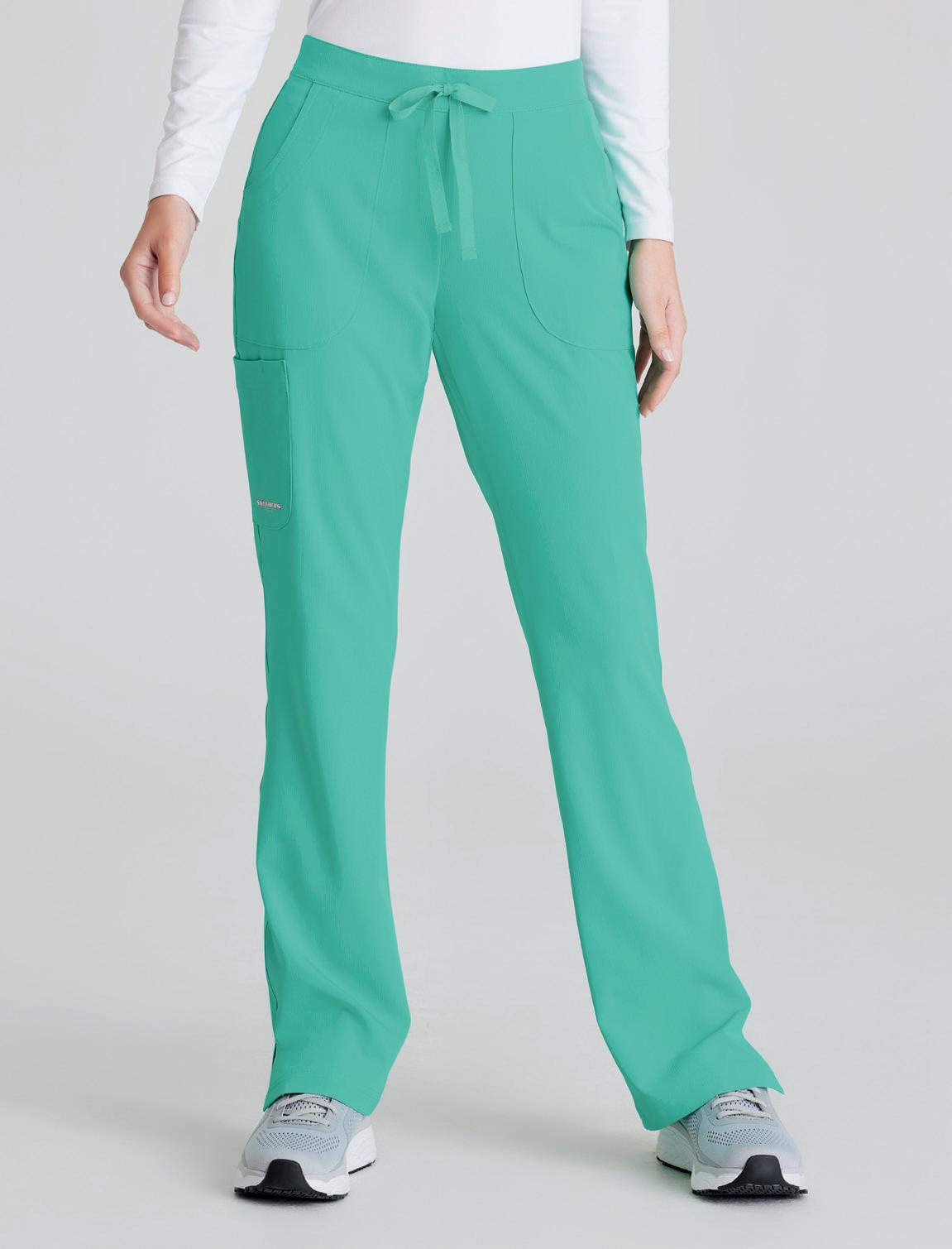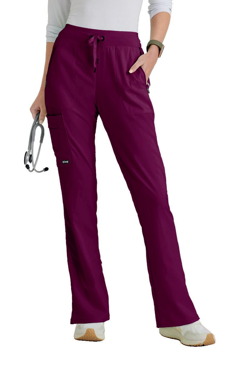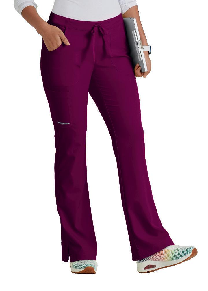4-pocket flat waistband with drawcord and inside logo elastic, angled zipper front pockets, patch cargo pocket with pen slot, back patch pocket, fit & flare pant