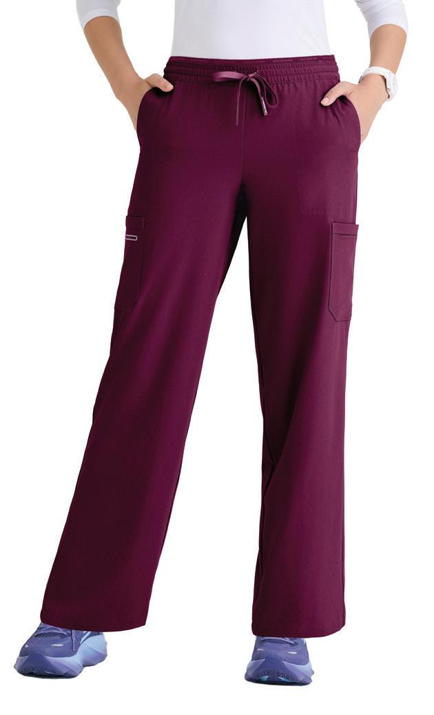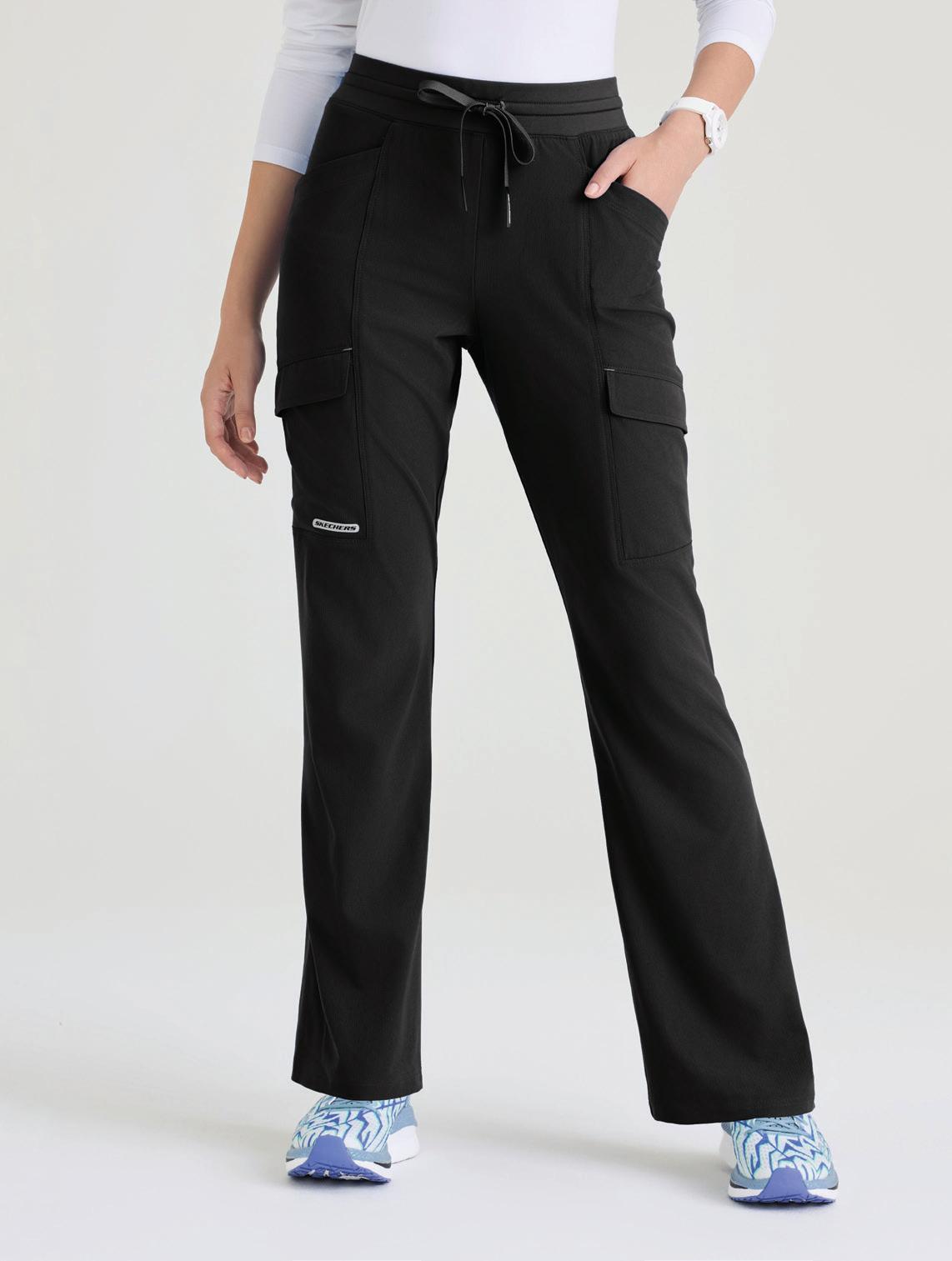 4-pocket flat waistband with drawcord and inside logo elastic, angled zipper front pockets, patch cargo pocket with pen slot, back patch pocket, fit & flare pant