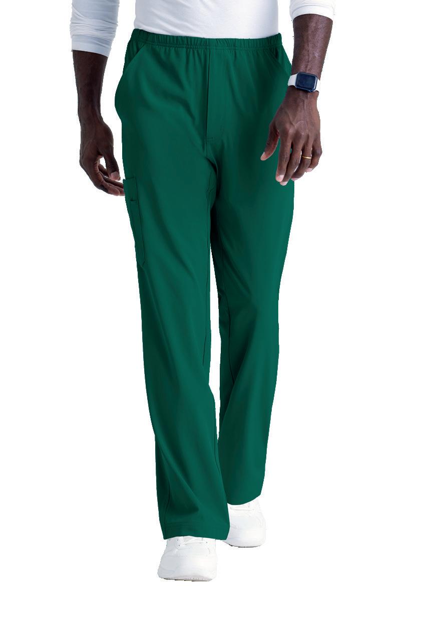 with drawcord, on-seam front pockets, top entry cargo pockets, inner thigh gusset, patch back pocket, slim straight pant