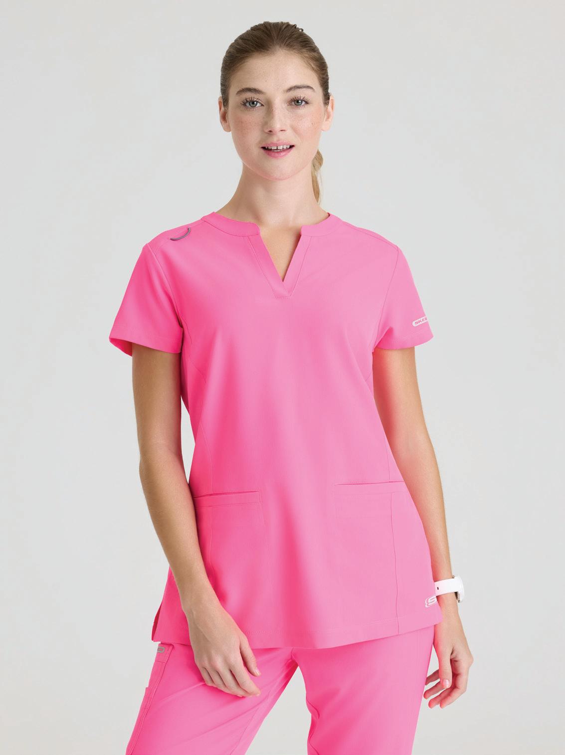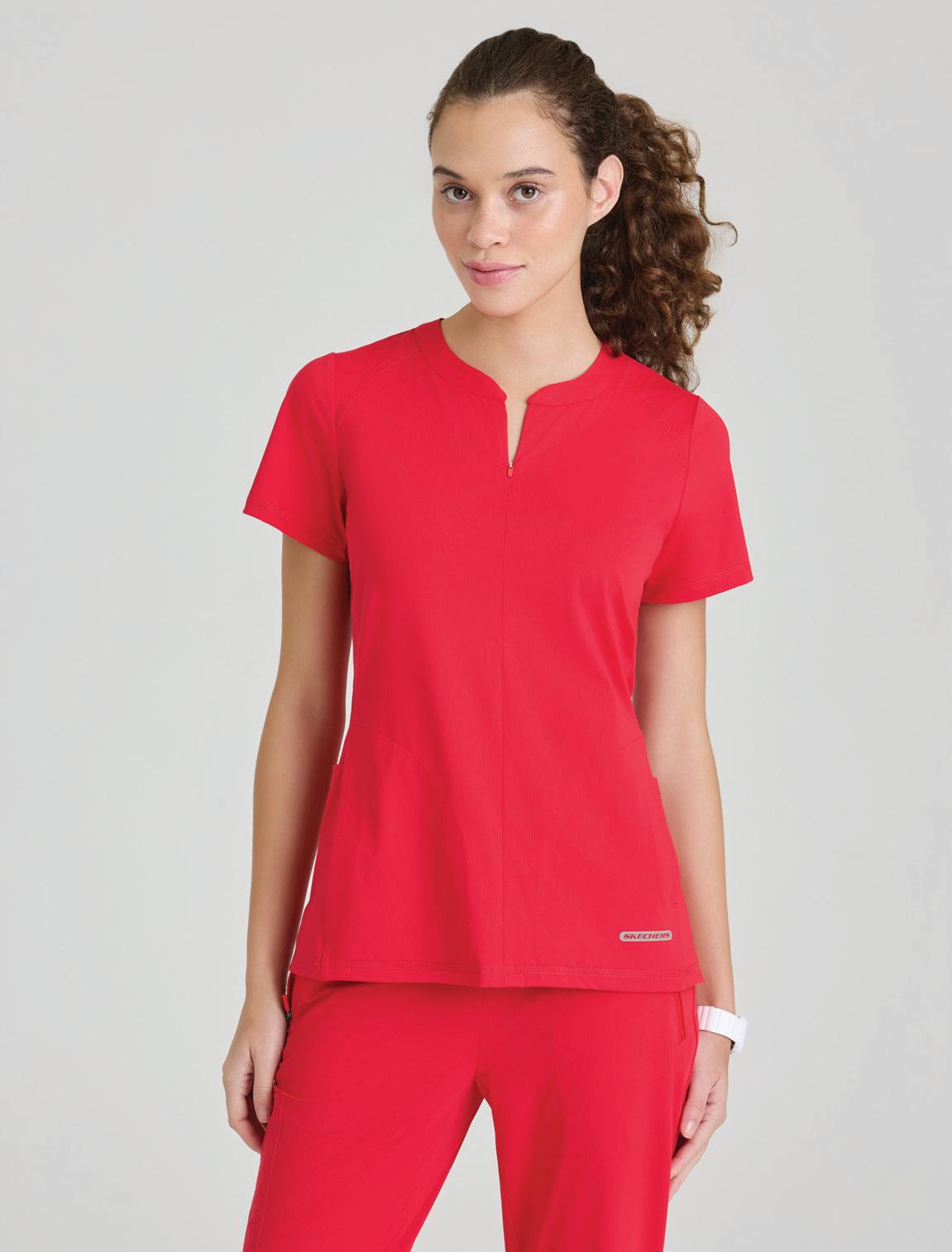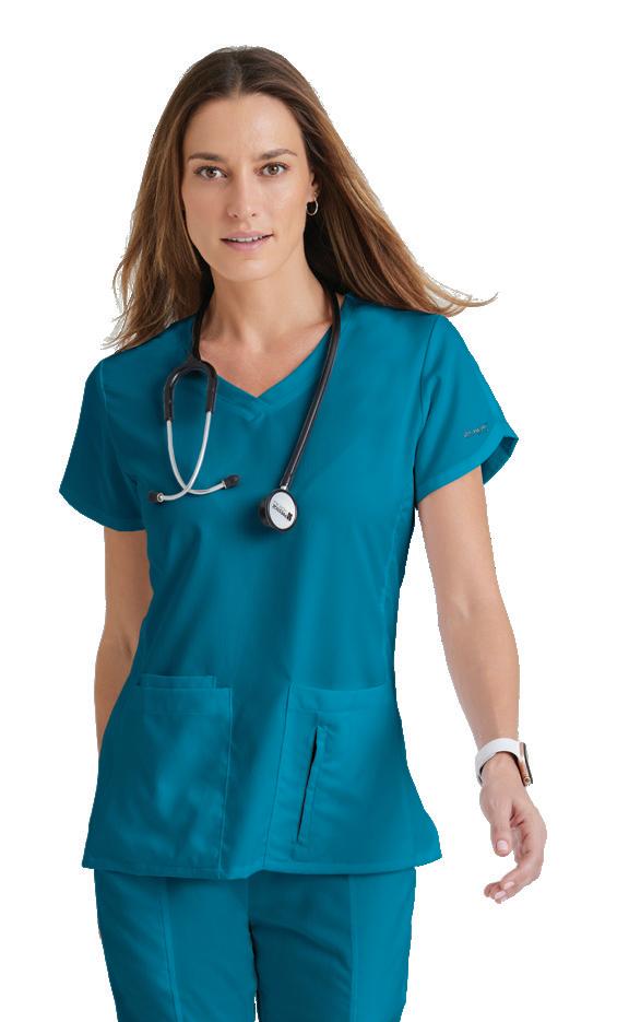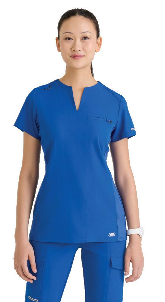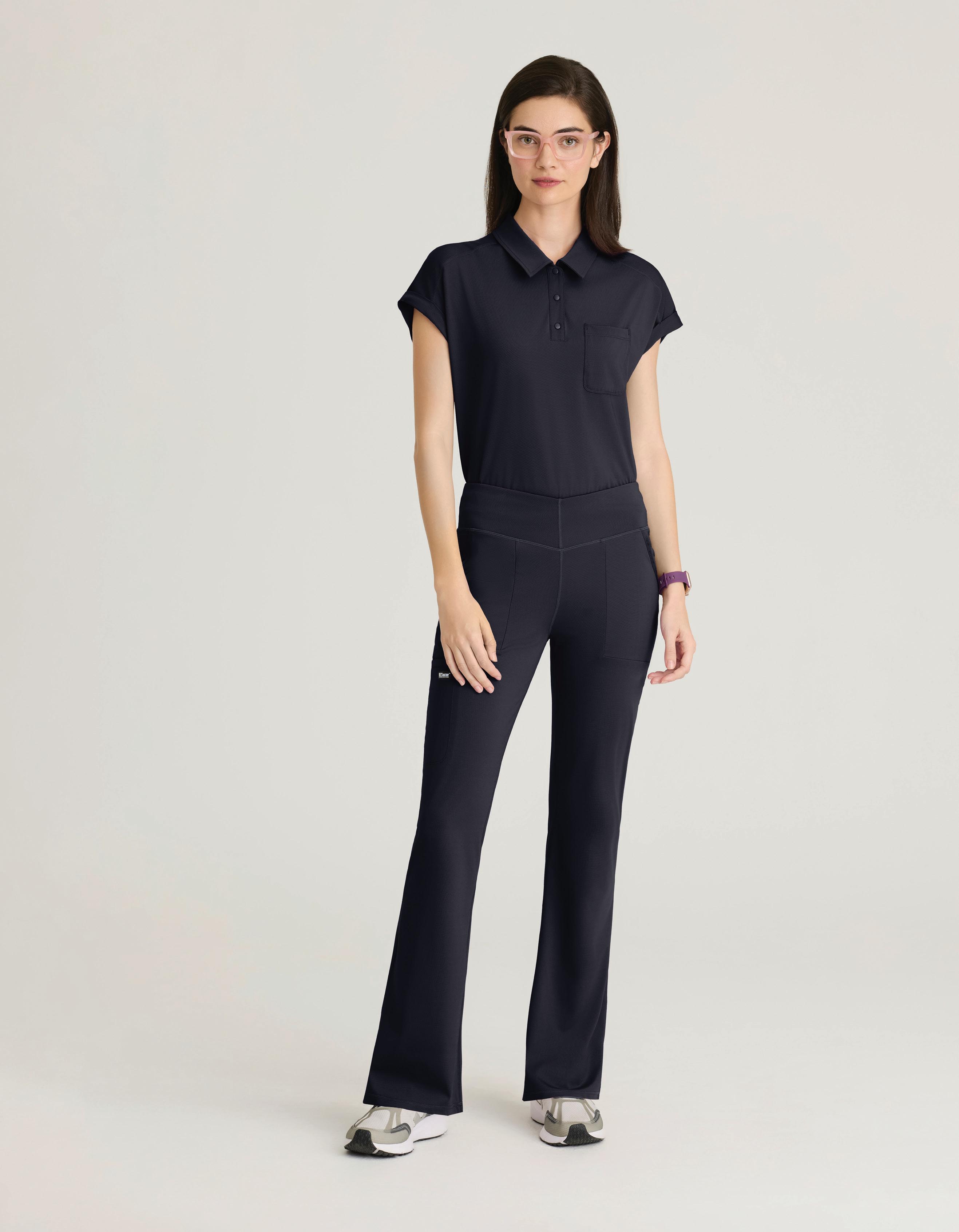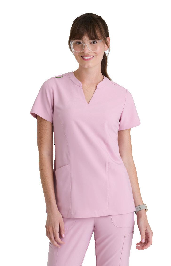 GRST045 Serena Top 3-pocket, ribbed V-neck, PDA pocket, logo tape side slit detail, rib knit back insets with princess seam, straight hem