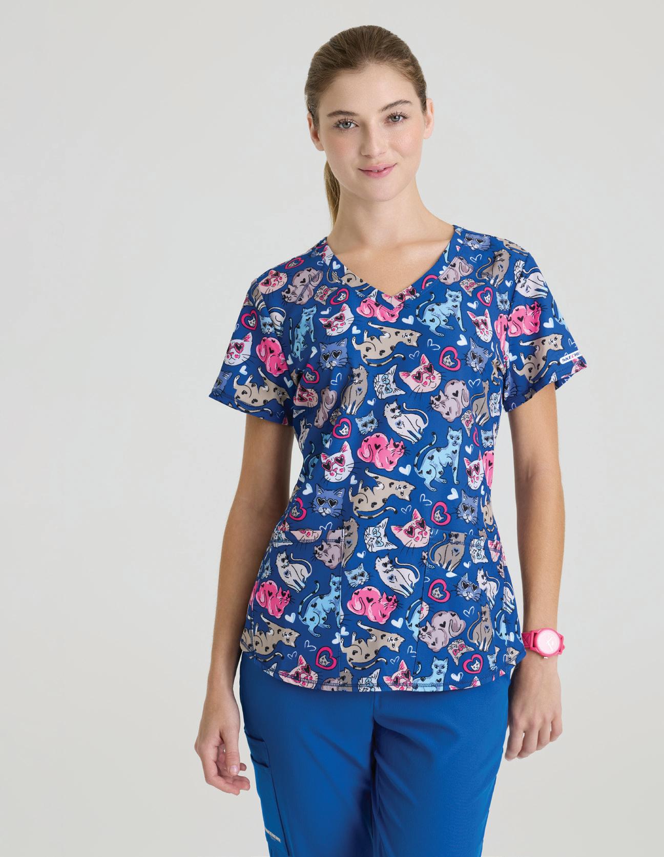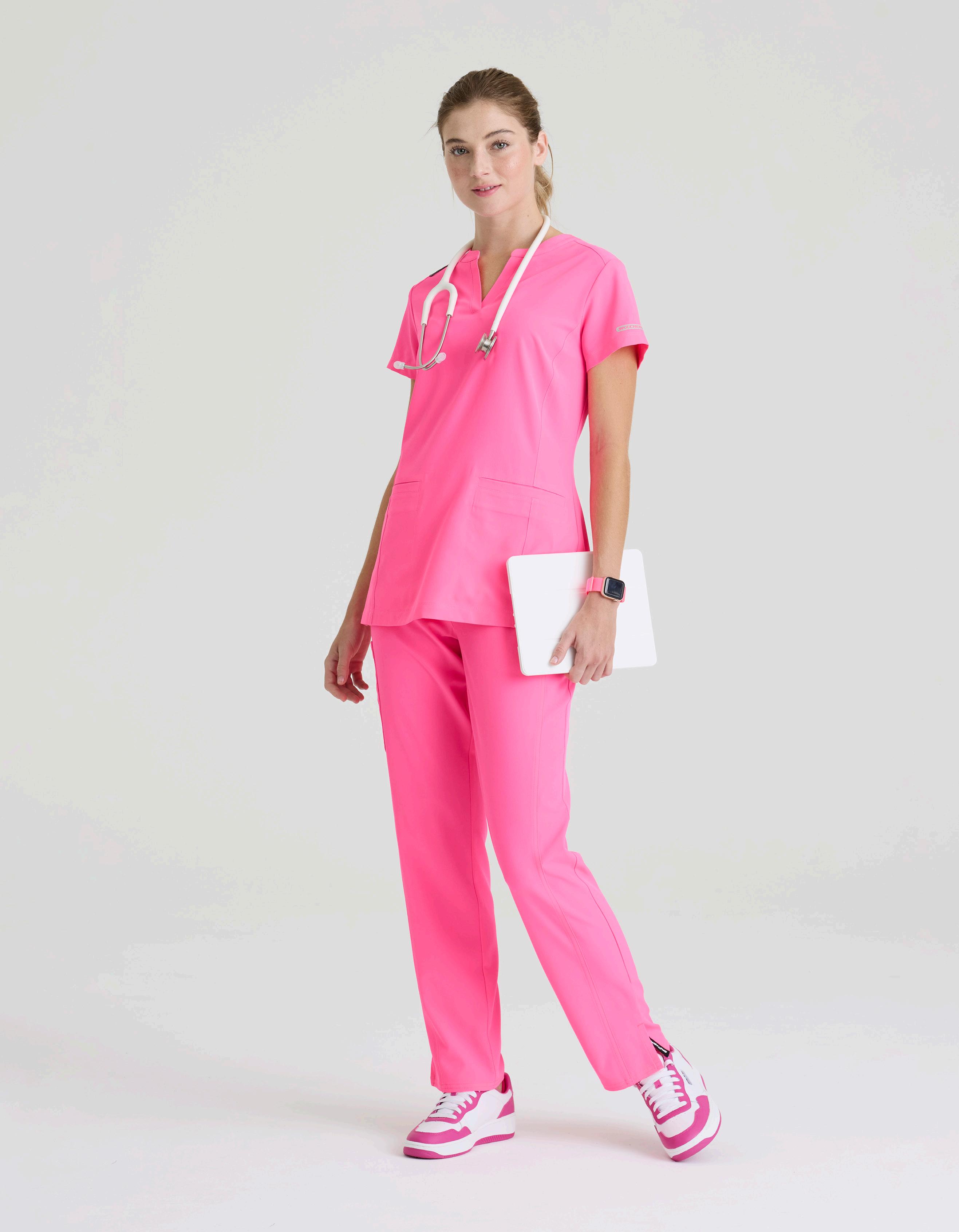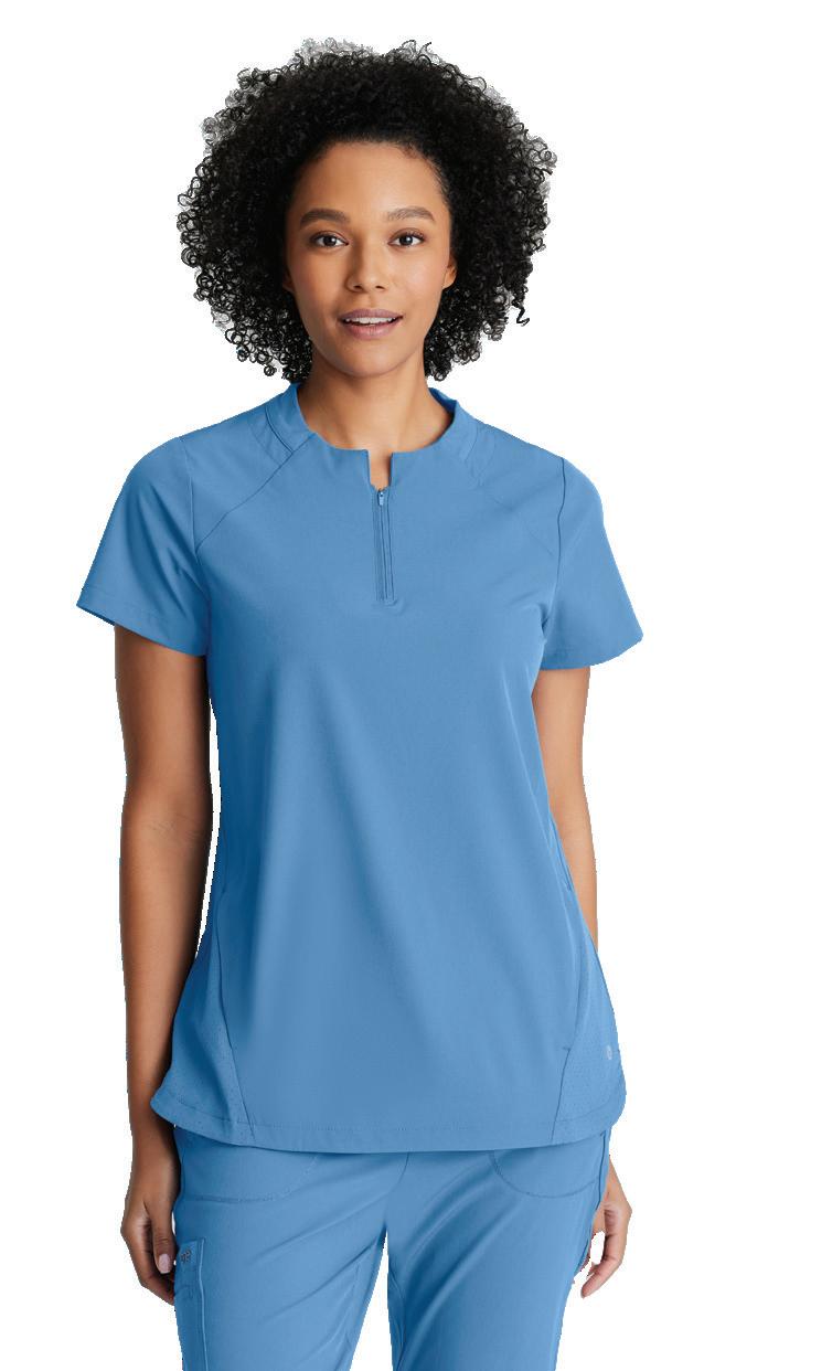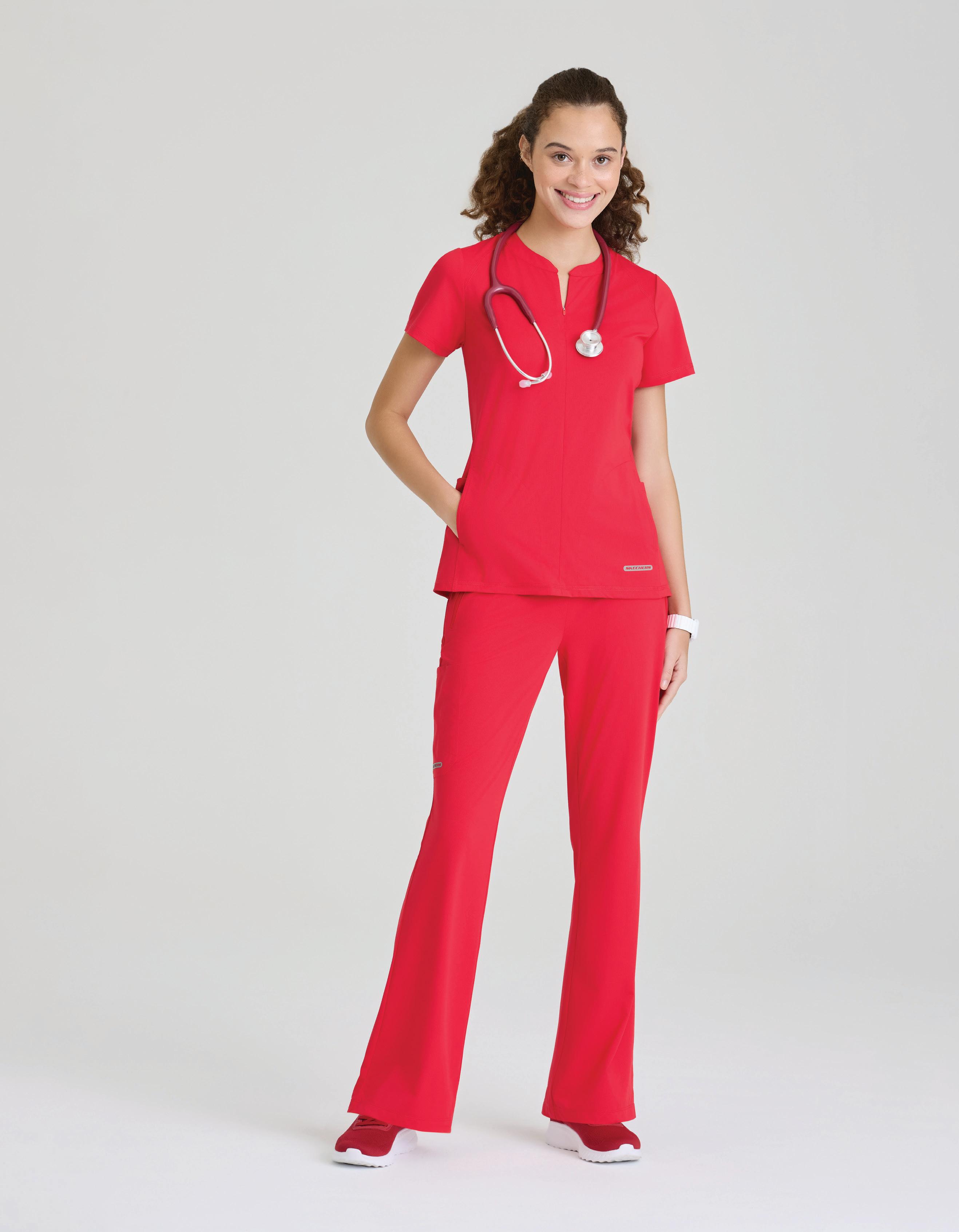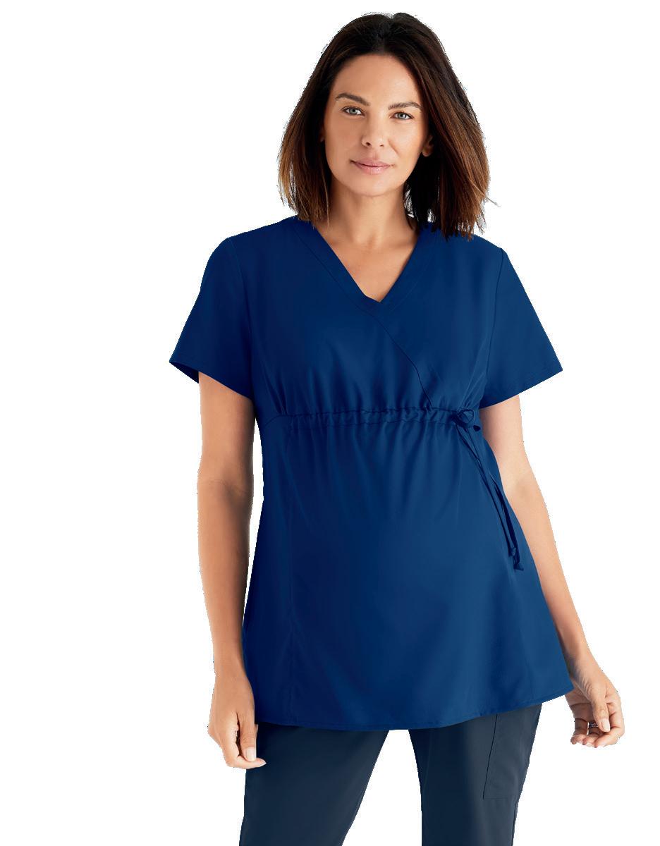 GRST045 Serena Top 3-pocket, ribbed V-neck, PDA pocket, logo tape side slit detail, rib knit back insets with princess seam, straight hem