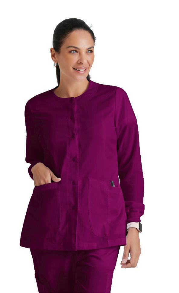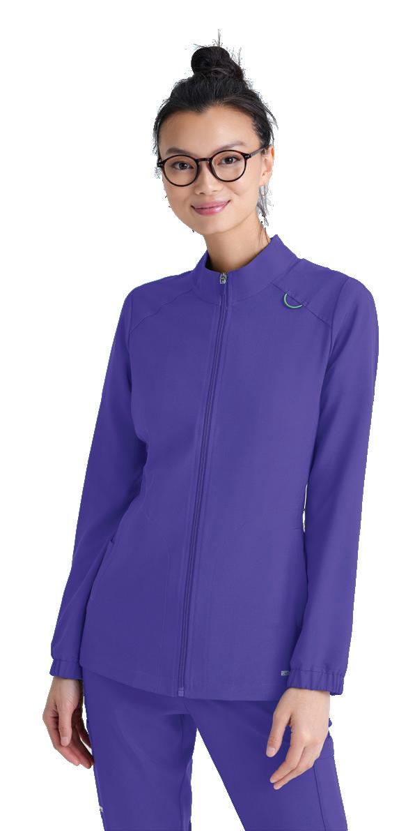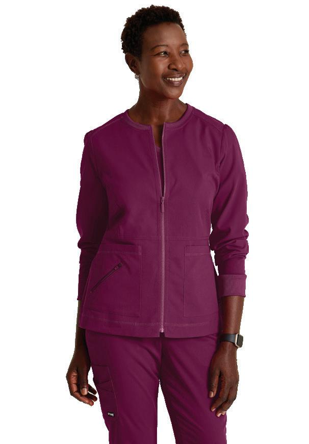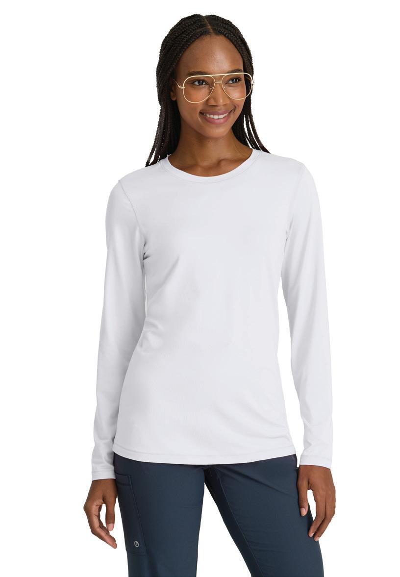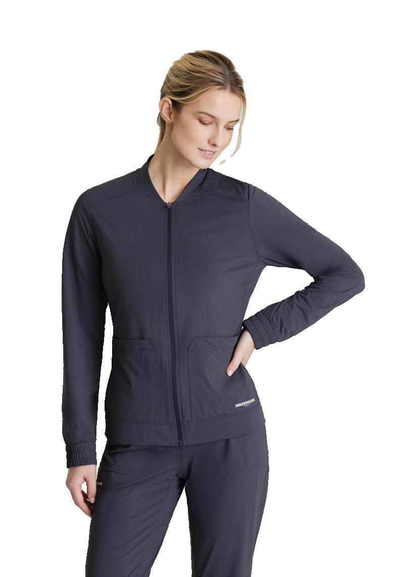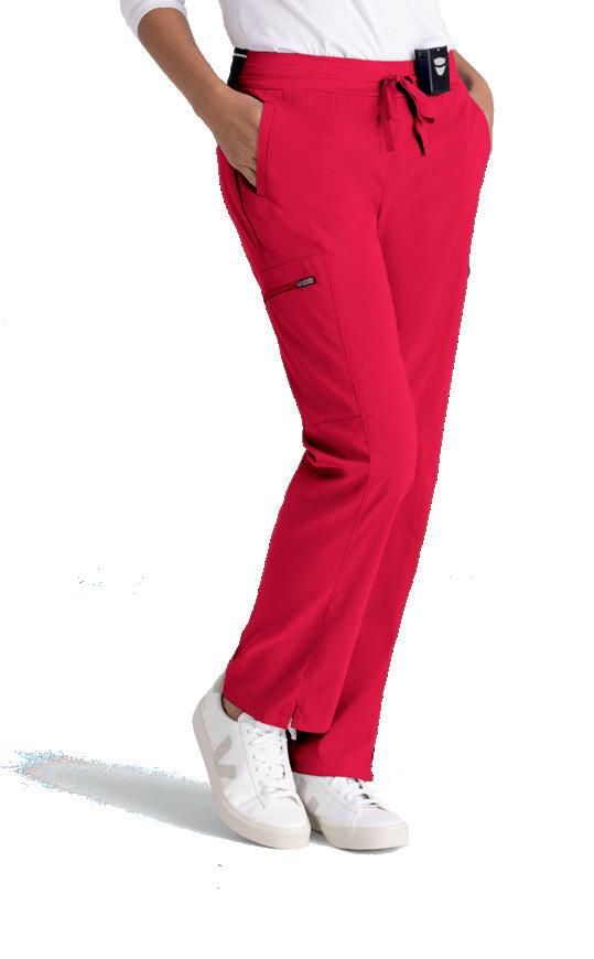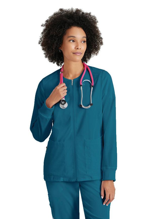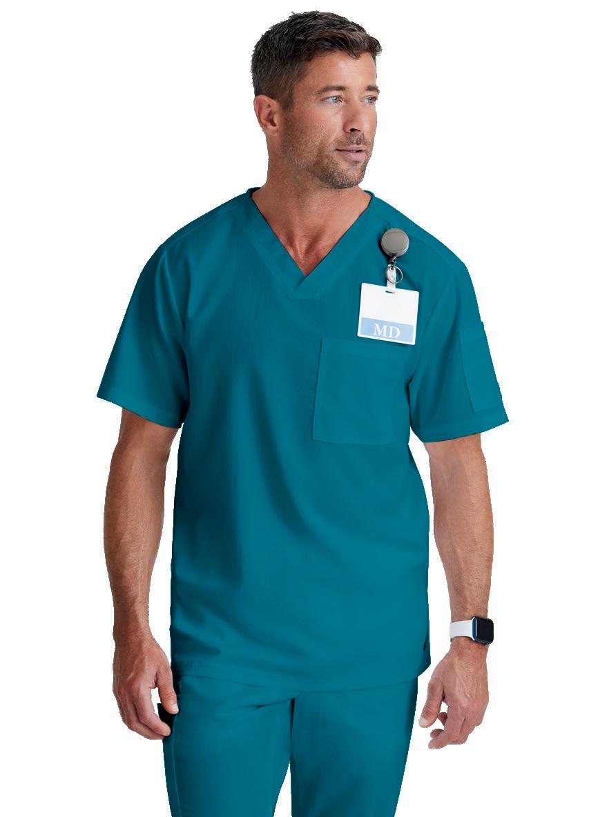 GRST045 Serena Top 3-pocket, ribbed V-neck, PDA pocket, logo tape side slit detail, rib knit back insets with princess seam, straight hem