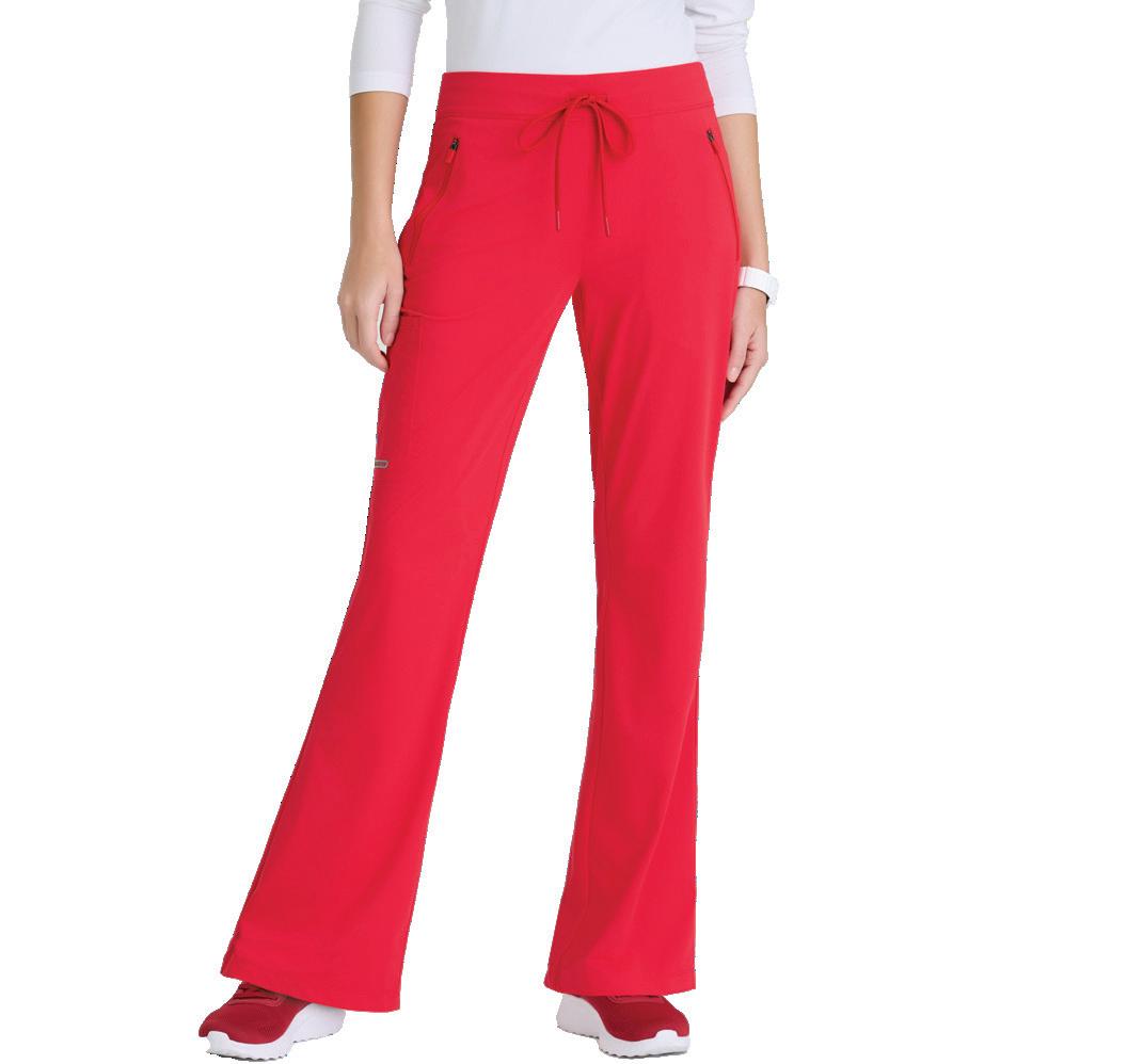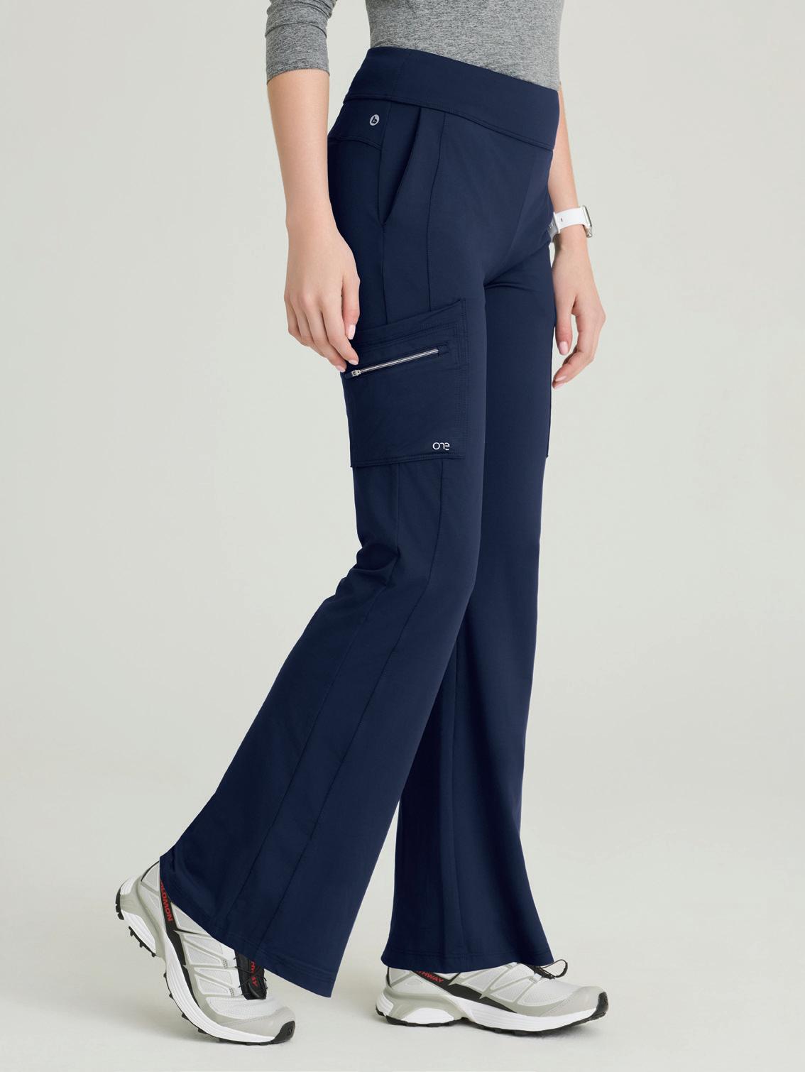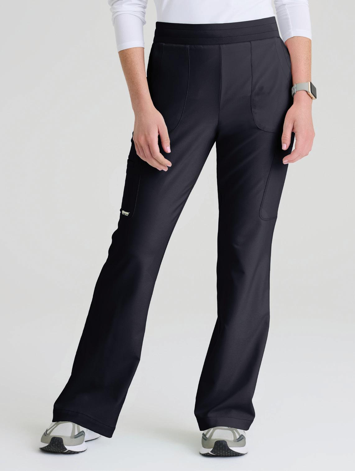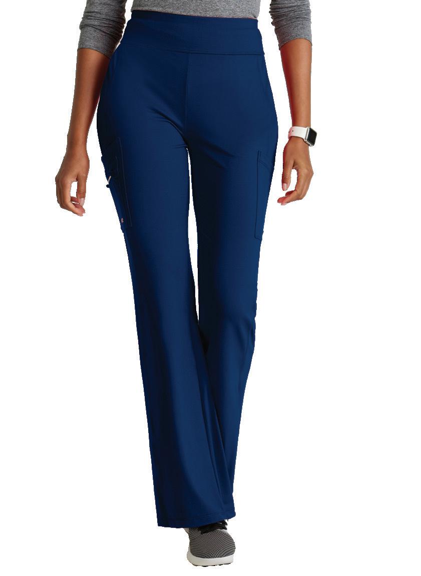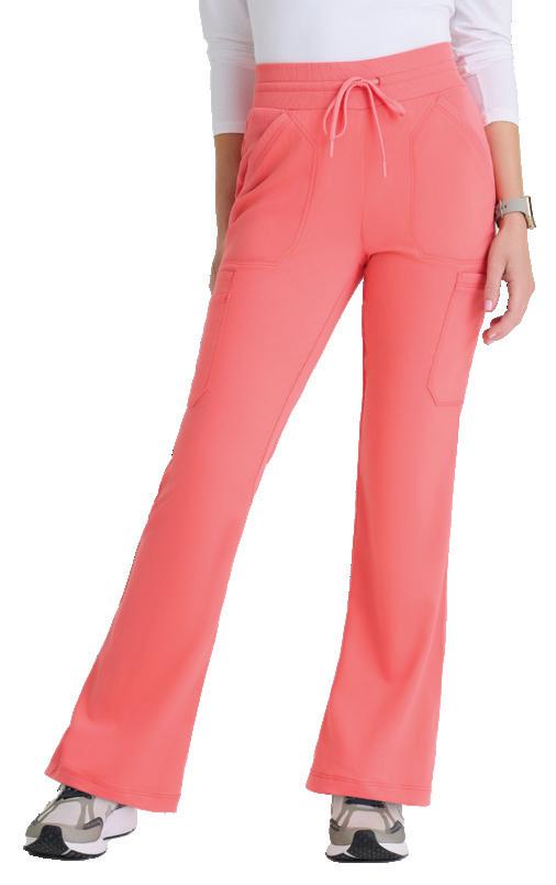 7-pocket, knit waistband, two rib trim slant top-entry pockets, two cargo pockets with additional single cargo pocket, back riser with two pockets, fit and flare pant
