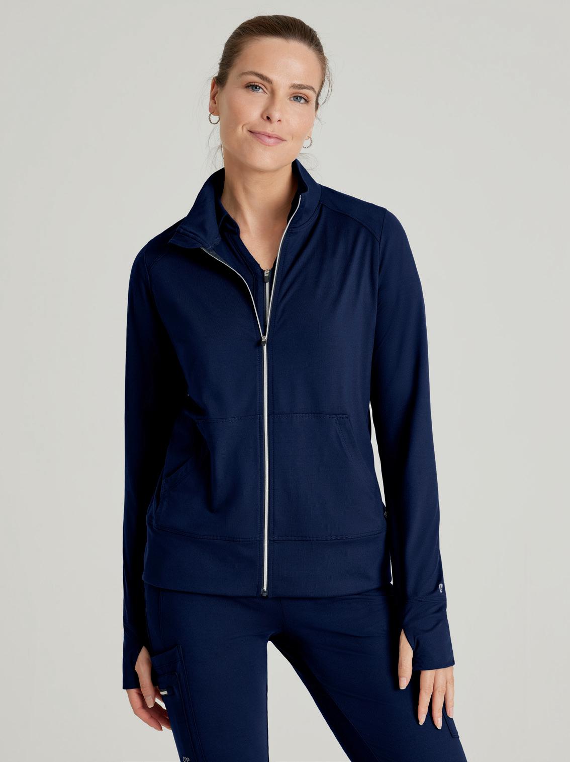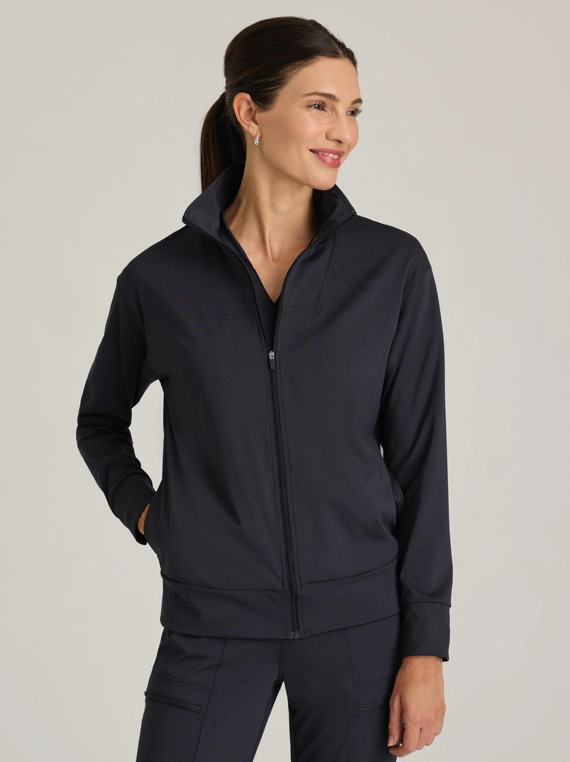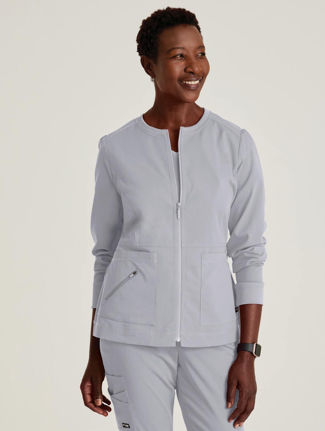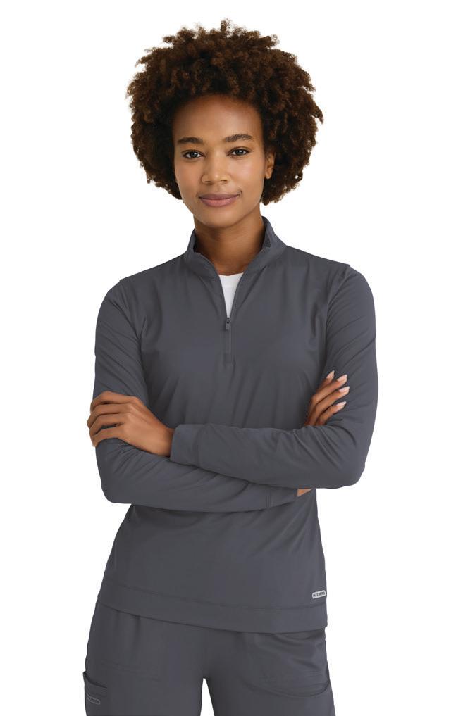 NEW GRST292 Kristi Top 2-pocket, Micro-funnel collar rib knit collar placket, with rib knit side panels, two top entry pockets, side vents, high low hem top