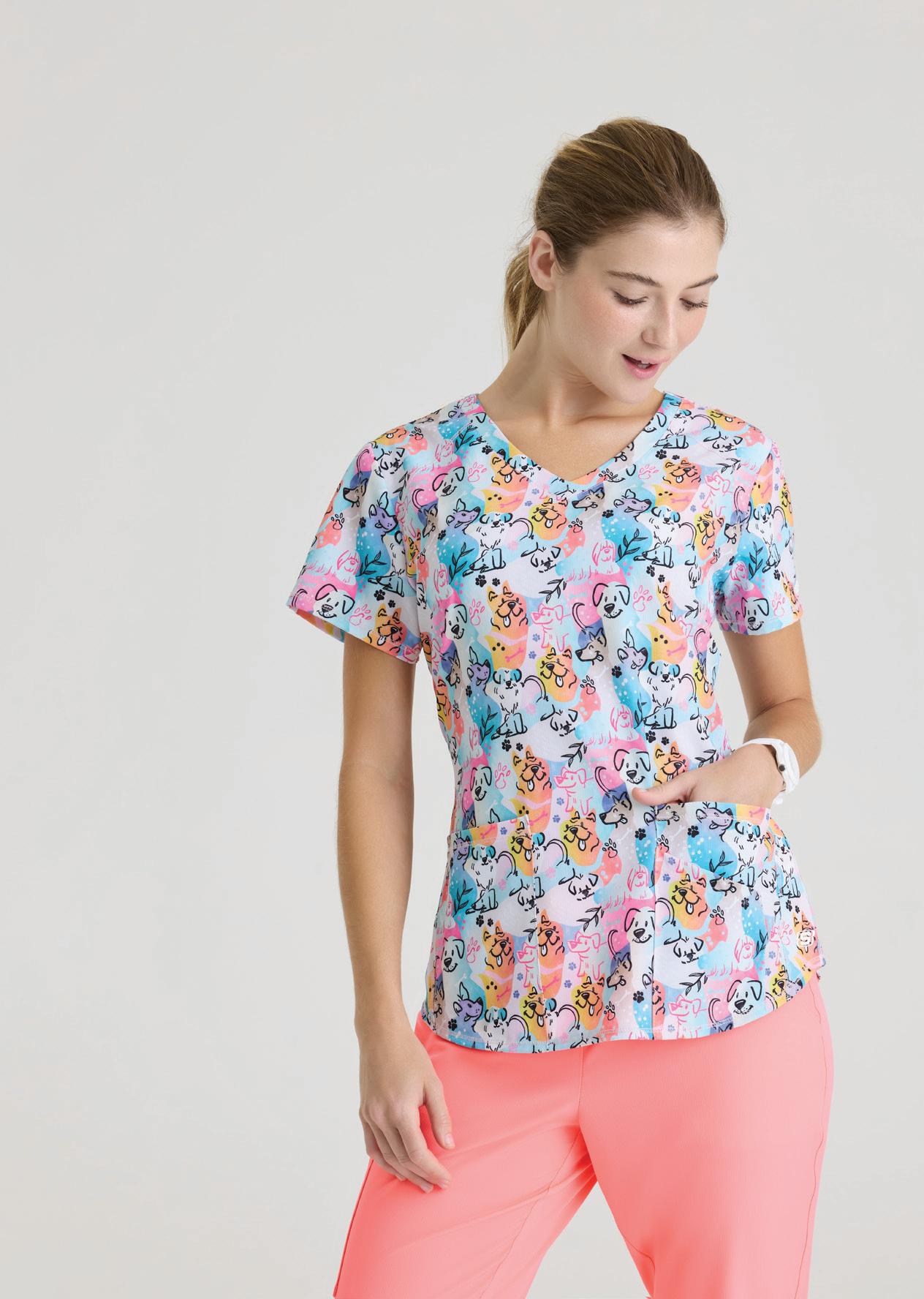 GRST011 Emma Top 4-pocket, V-neck with angled seams Sizes: XXS - 5XL, CB: 26"