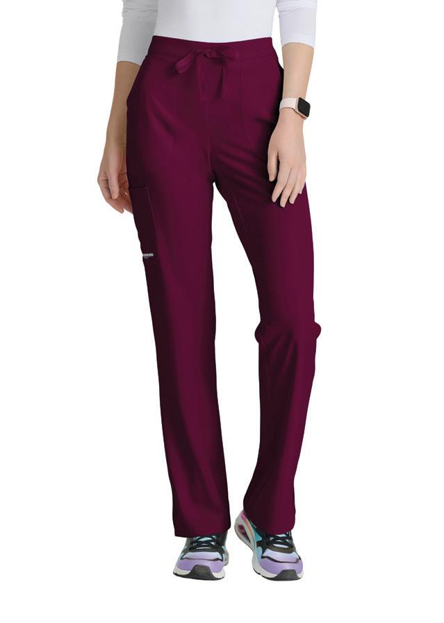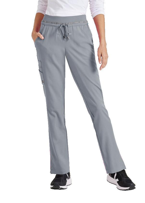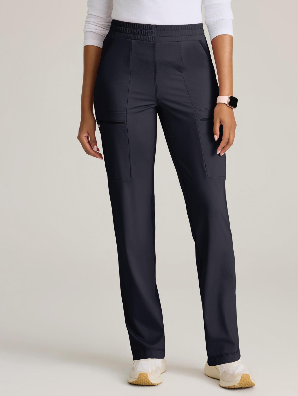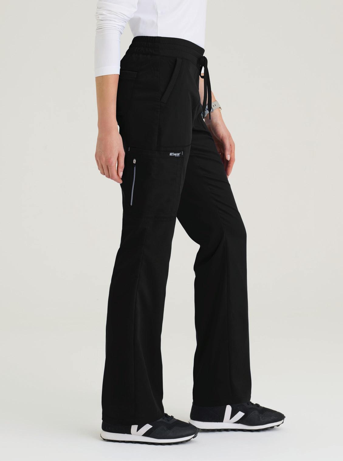 4-pocket encased elastic waistband with drawcord, zip-fly, slanted front pockets, framed zipper cargo pocket, inner thigh gusset, framed zipper back pocket slim straight pant