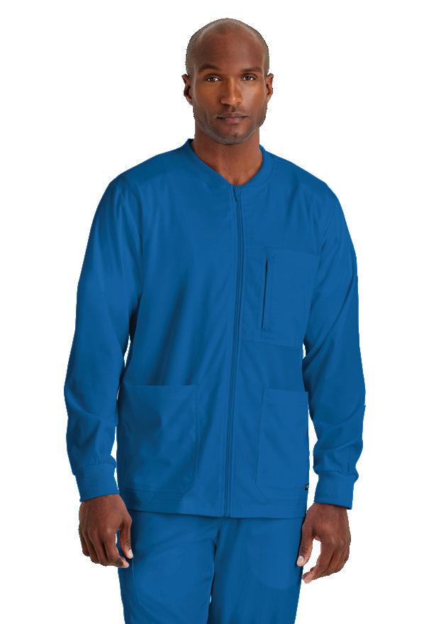 4-pocket zip-front collar with yoke, dropshoulder, banded bottom warm-up Sizes: XS - 5XL, CB: 23" Color shown: 905 Steel