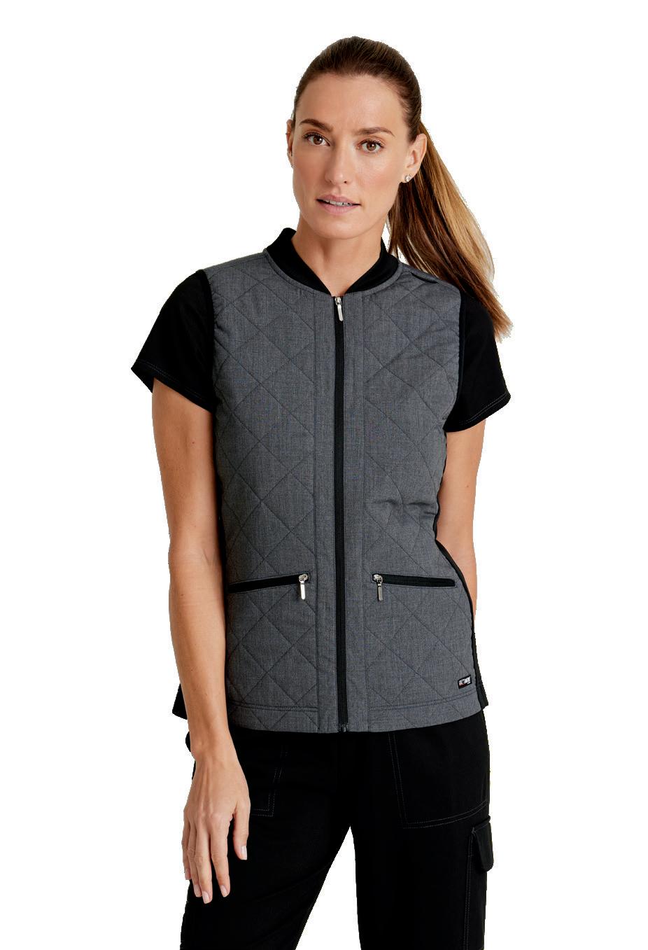 GRSV845 Cristina Vest NEW 2-pocket, rib knit neck band and side panels, diamond quilted body, badge loop, zipper waist pockets, zip-front vest