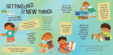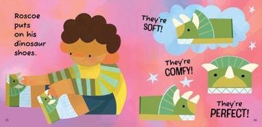 When Roscoe’s perfect puppy shoes get too small, he gets a new pair of dinosaur shoes. These shoes are different, and new things can be scary. But Roscoe’s sister Ivy knows how to help him get used to his new shoes.