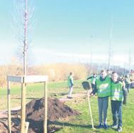 De jongeren gingen gewapend met een spade kwiek aan het werk. Met een mooie lentezon en een zacht briesje was het ook heerlijk toeven buiten. Met wat hulp werden de bomen neergezet en de wortels bedolven met aarde.