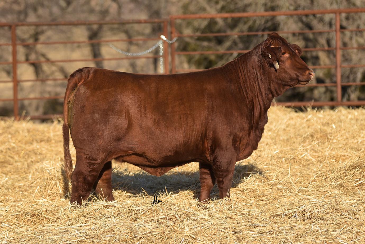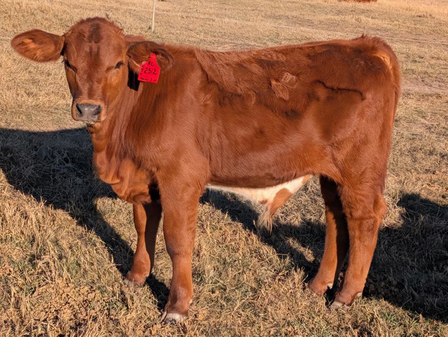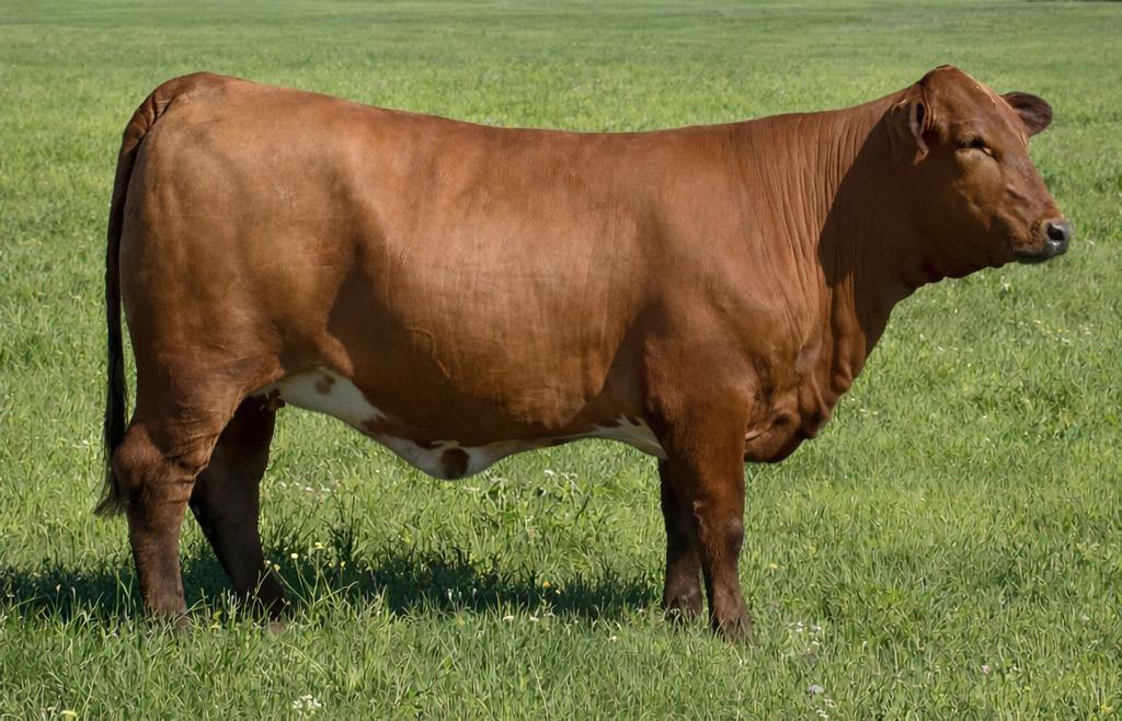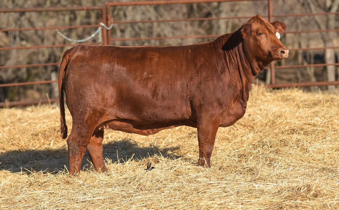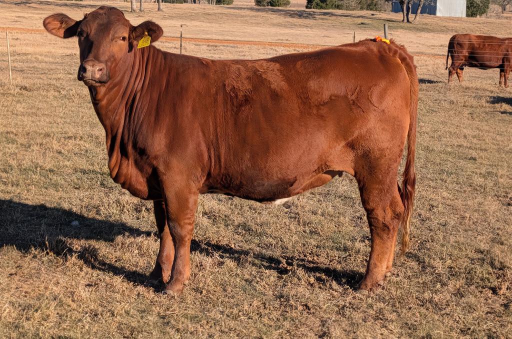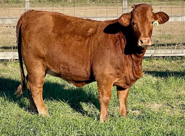 A homozygous red, heterozygous polled heifer that’s a great combination of Collier x Hood Red Reserve.