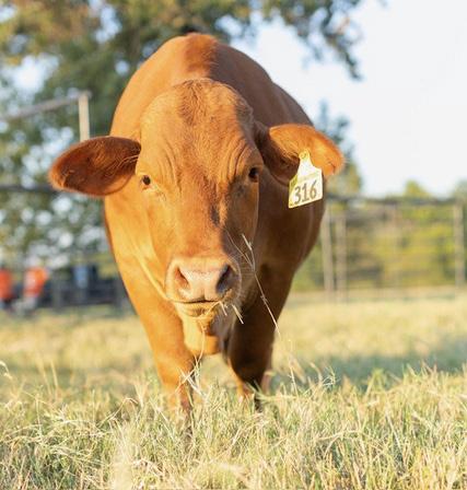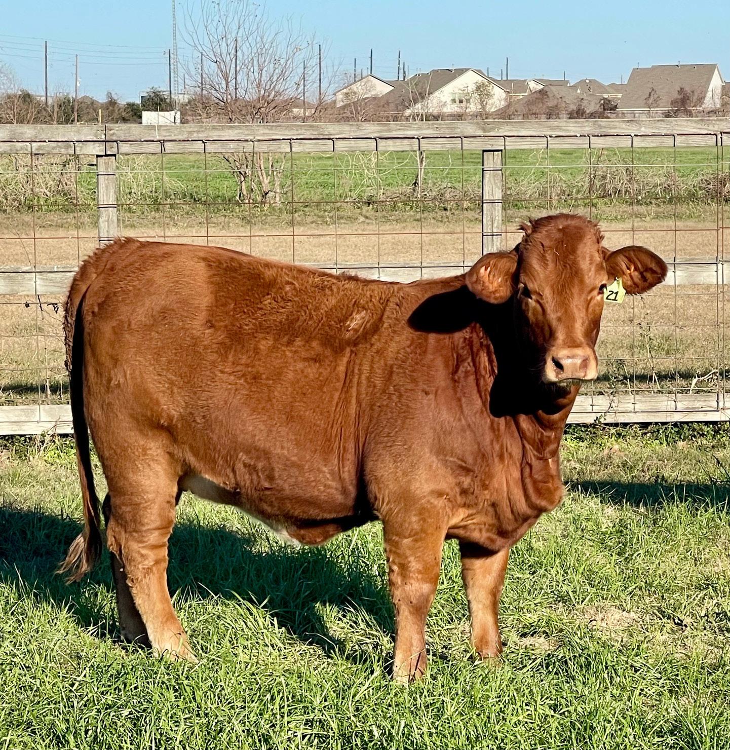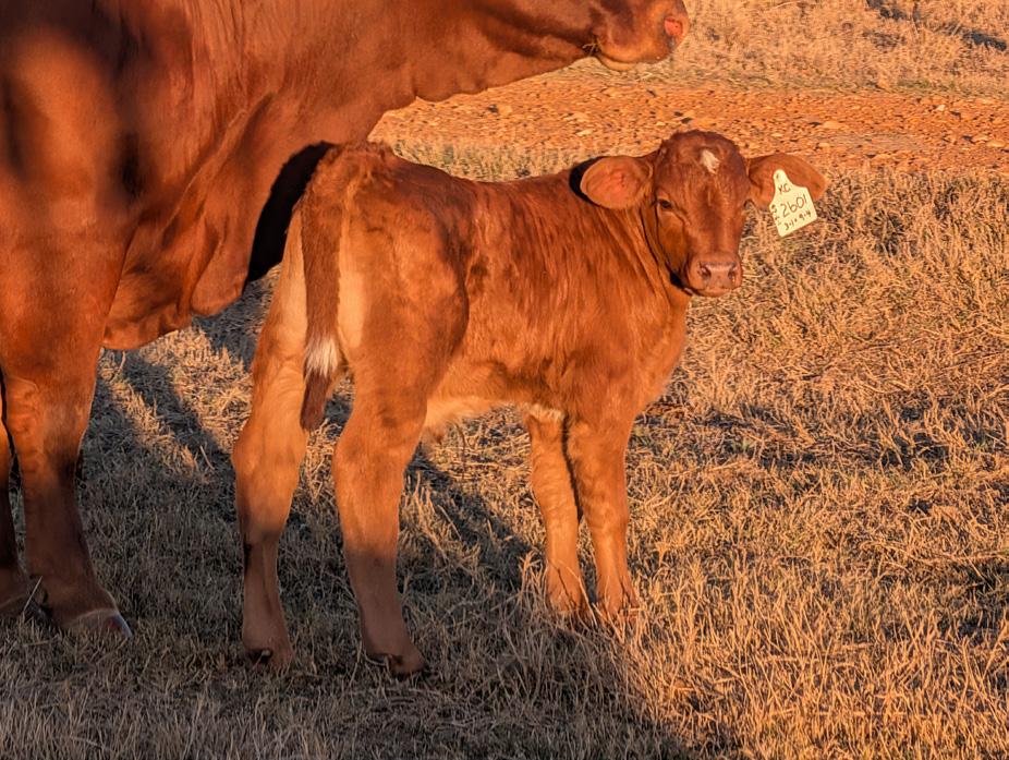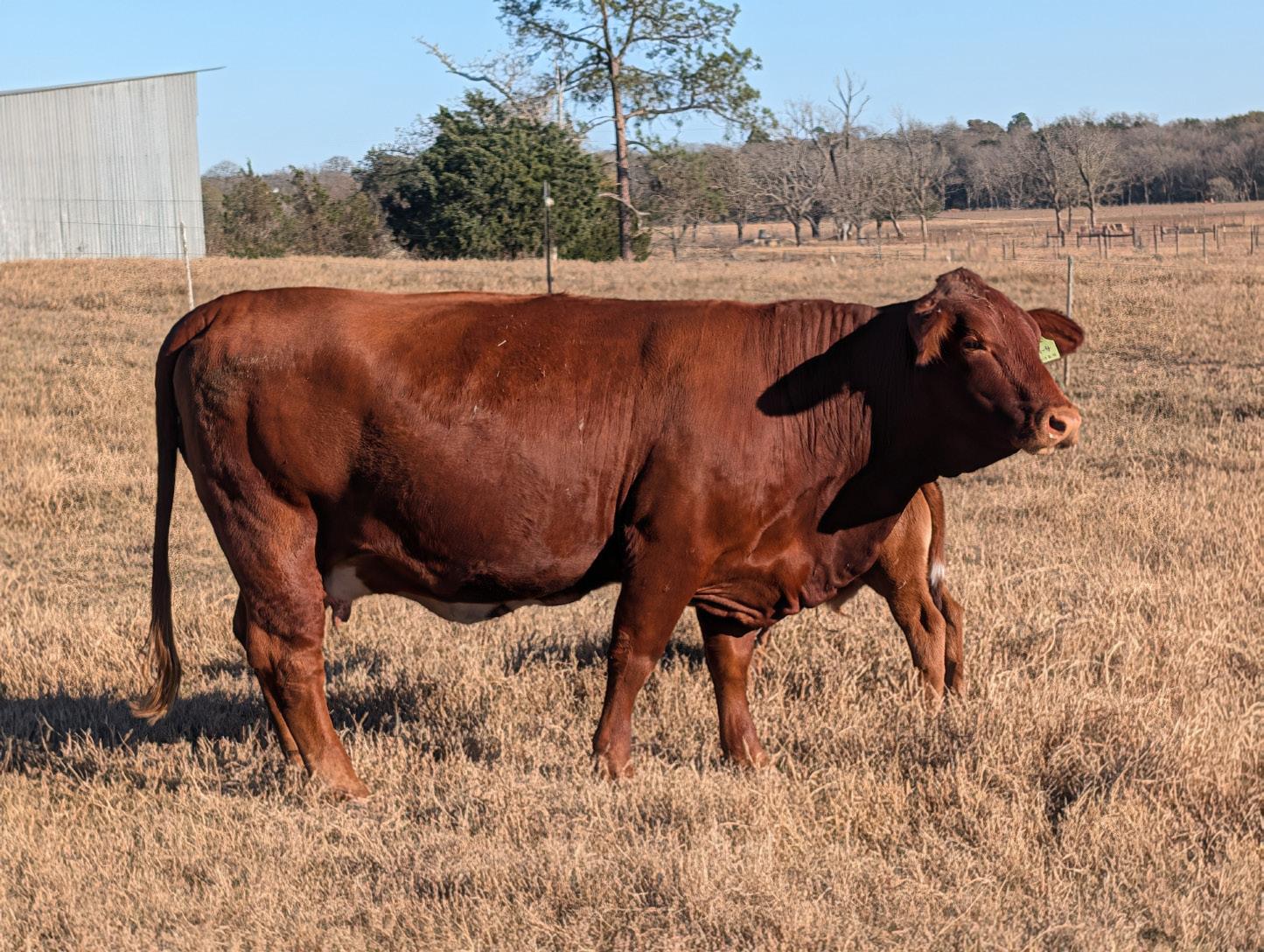 A homozygous red, heterozygous polled heifer that’s a great combination of Collier x Hood Red Reserve.
