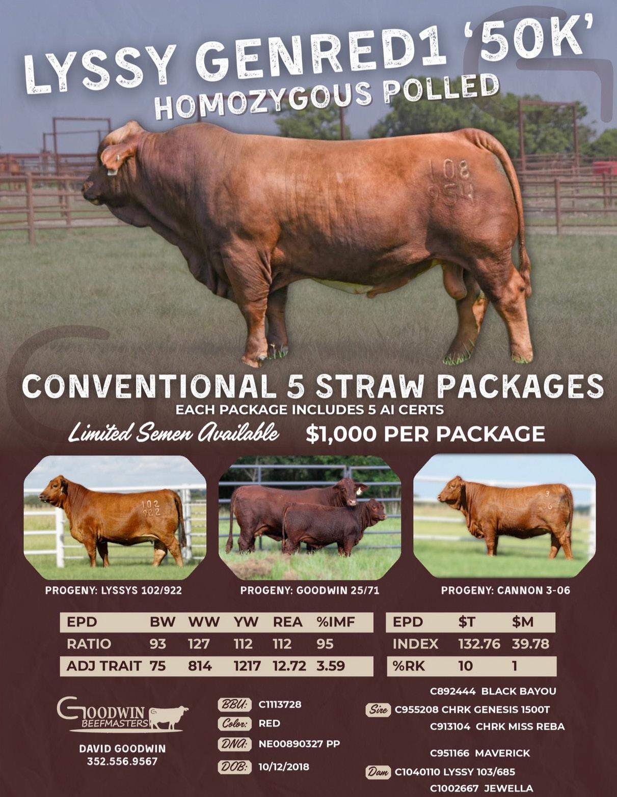 Woo Wee! Talk about a perfect mating, then look no further. Homozygous red and homozygous polled NG Firestone on top of RMB Real Deal. Darth Vader daughter out of Randy Mason’s cornerstone donor SWB Cry Baby. This will probably be the first and last time embryos will be sold out of her.