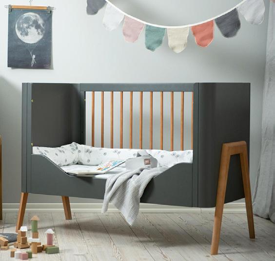Justerbar sengebunn i tre høyder. Praktisk sengehest kan kjøpes separat slik at sengen vokser i takt med barnet. Kommer i hvit og grå. 2799,-