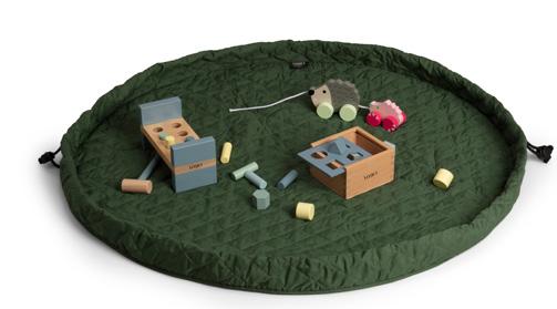 Yngri oppbevaringspose holder orden på barnets leker. Den kan enkelt brettes ut til en lekematte og pakkes sammen ved å snøres sammen. Før 249/549,-