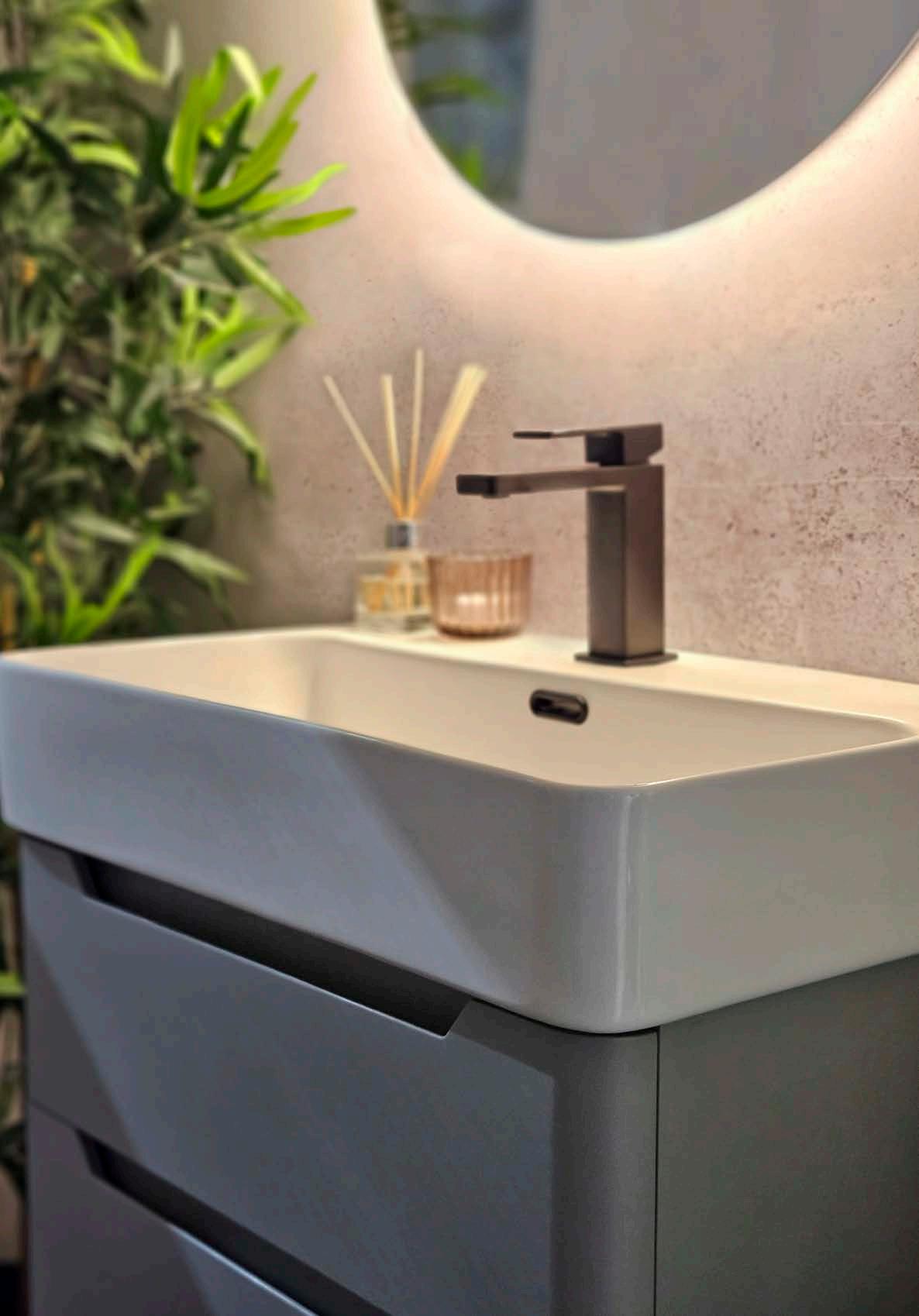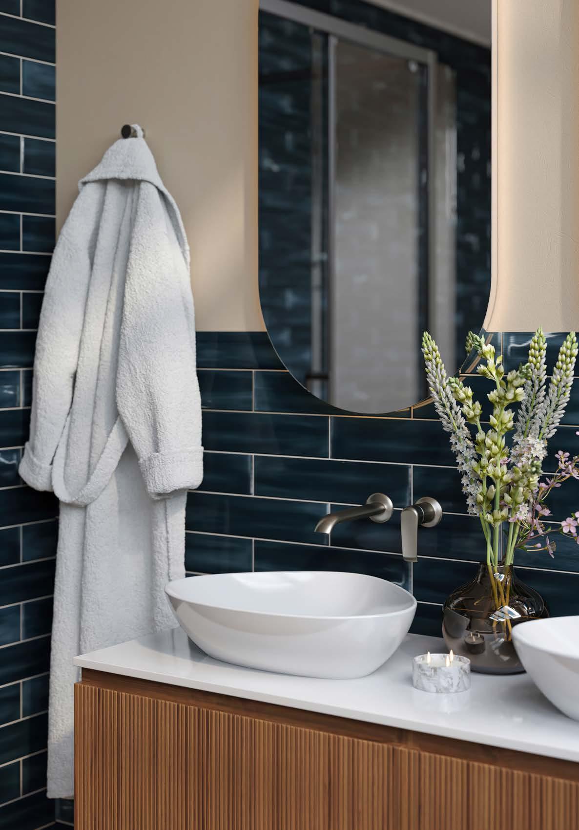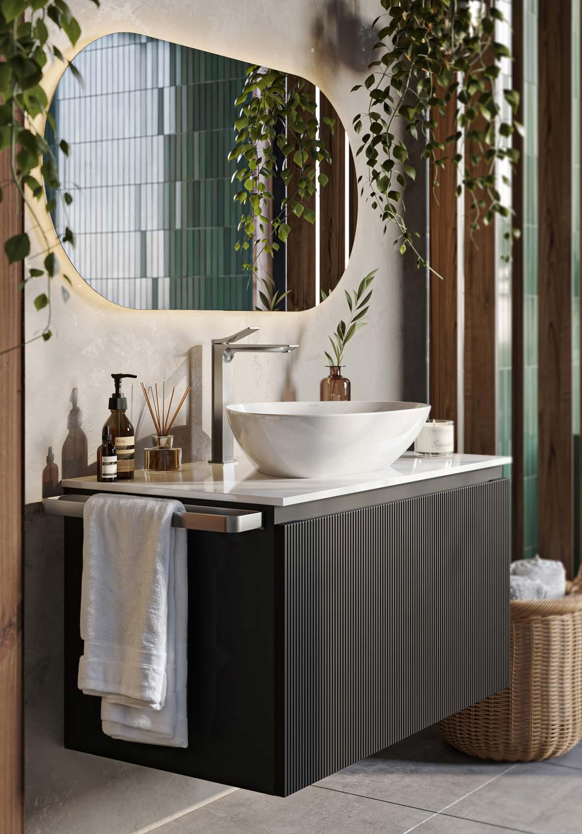 We offer special finishes coordinated across the entire range. Special finish options include the sleek brushed black, an elegant brushed gold and the smart brushed stainless steel. Customers can match their brassware in their chosen finish to accessories, flush plates, toilet hinge cover caps, basin wastes and overflows. We have an array of colour and finish options for our furniture, ranging from our opulent Walnut Noir to the contemporary Claypit Green.