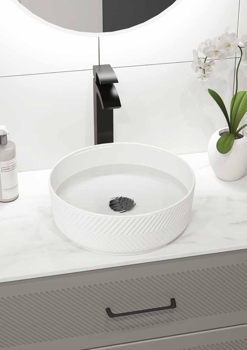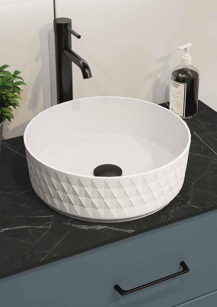 Choose from sit-on or countertop basins to personalise your space. Opt for sleek designs that mimic the furniture’s curves or indulge in compact laminate Black or White Marble effect finishes. For a final touch of elegance, explore our new patterned round vessel basins.