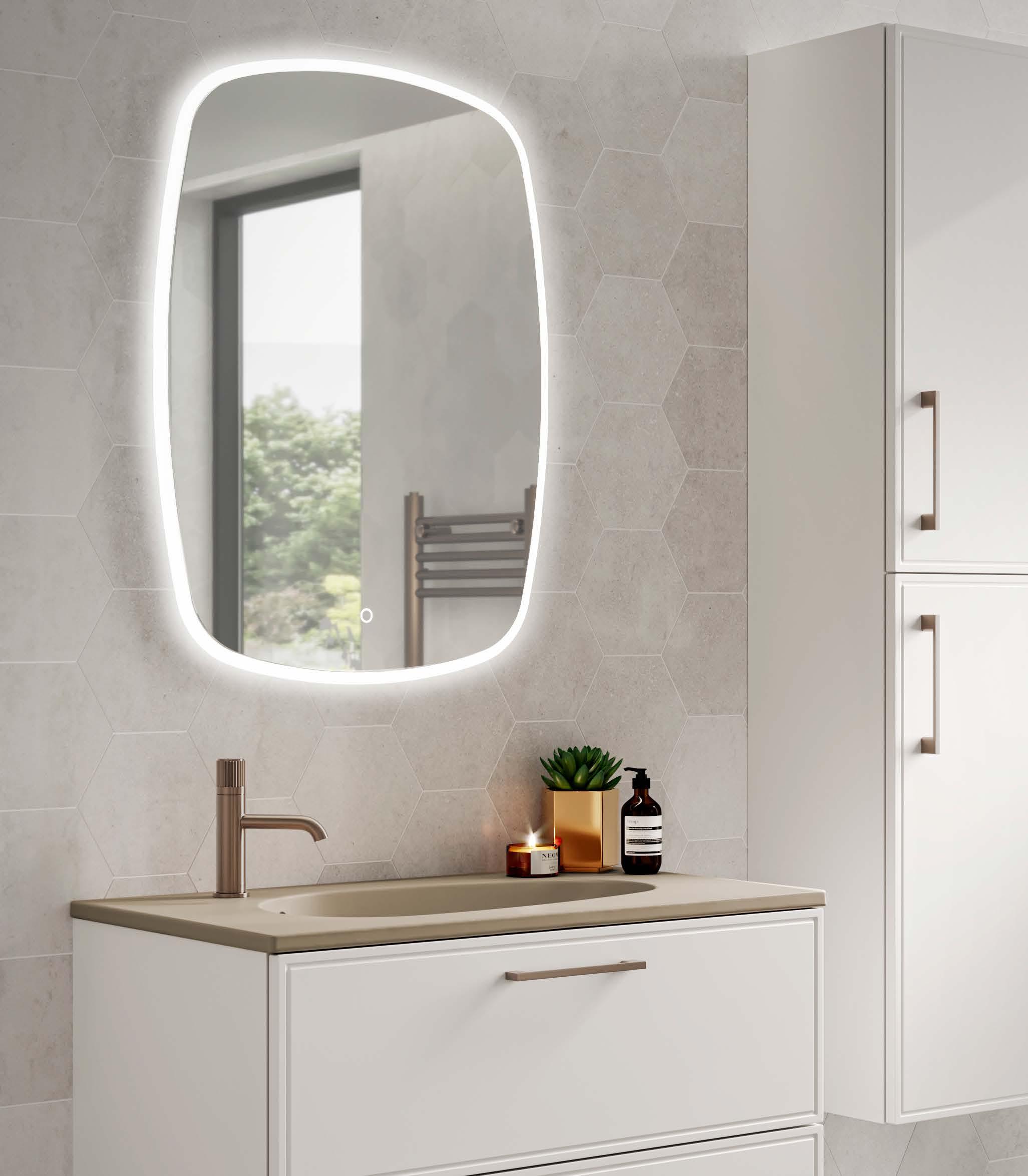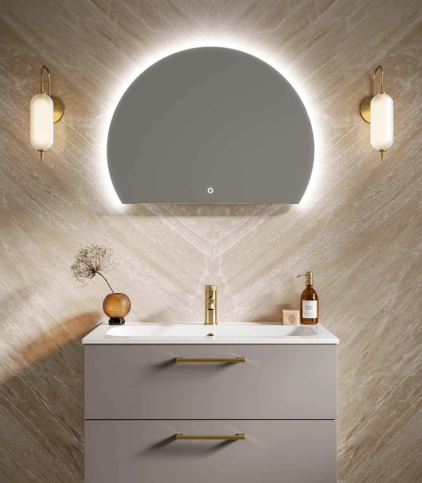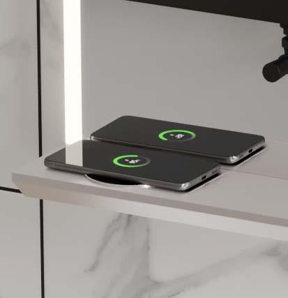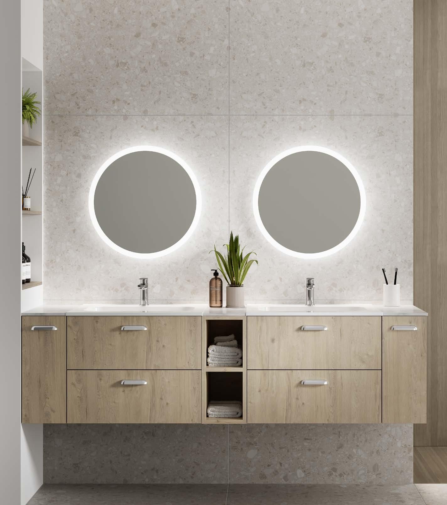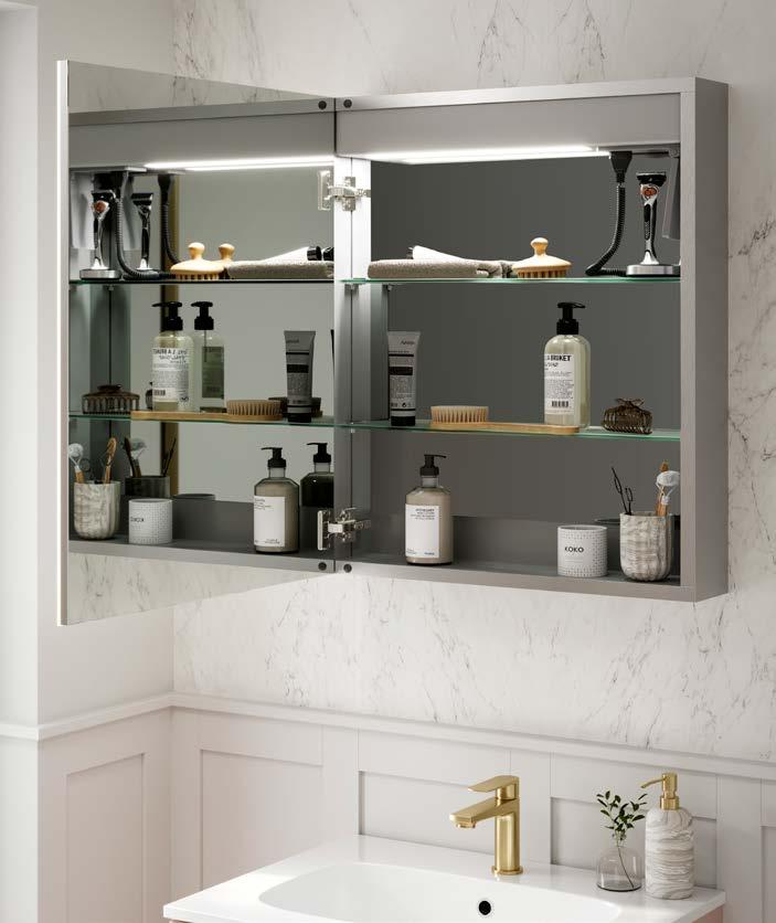 Minimalist, handleless design is enhanced with a hidden internal vanity drawer for smarter storage solutions.