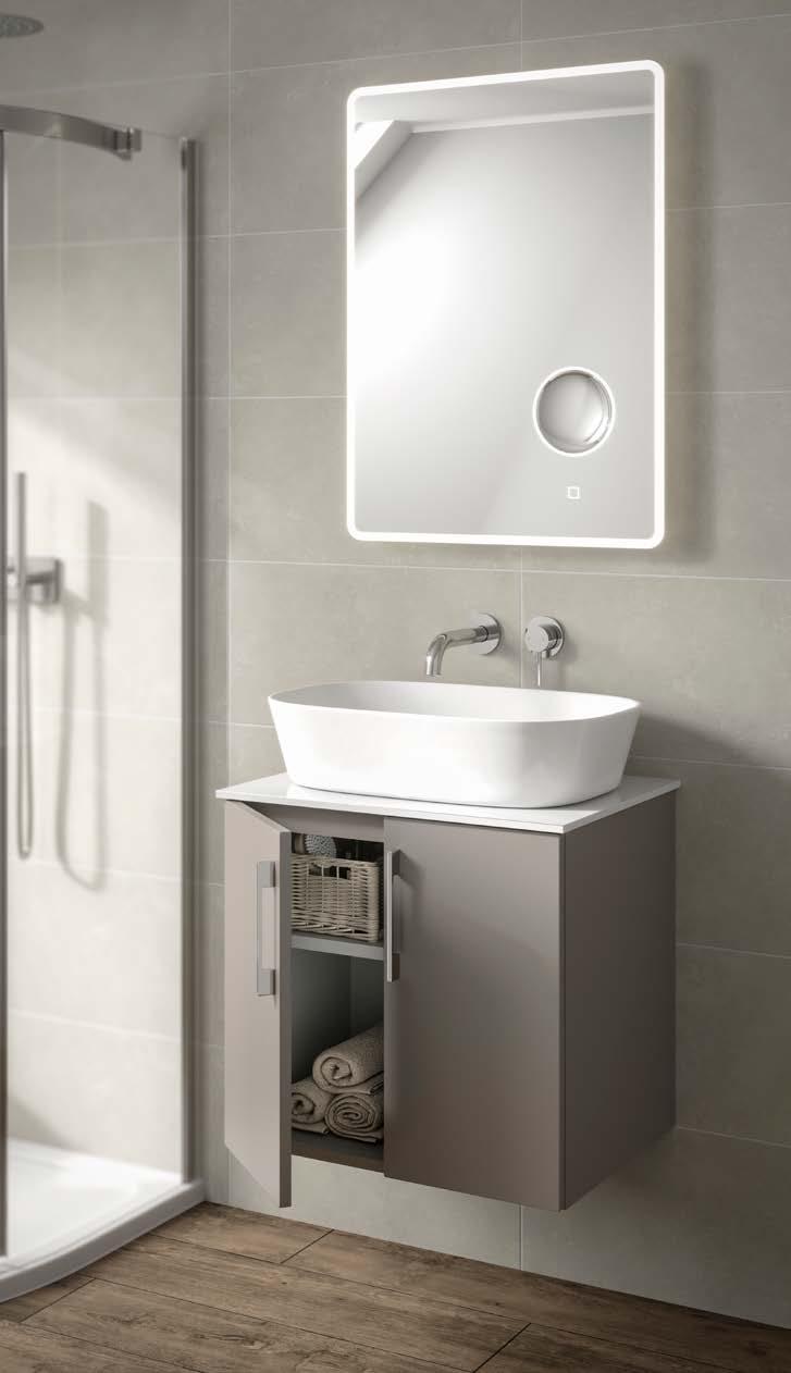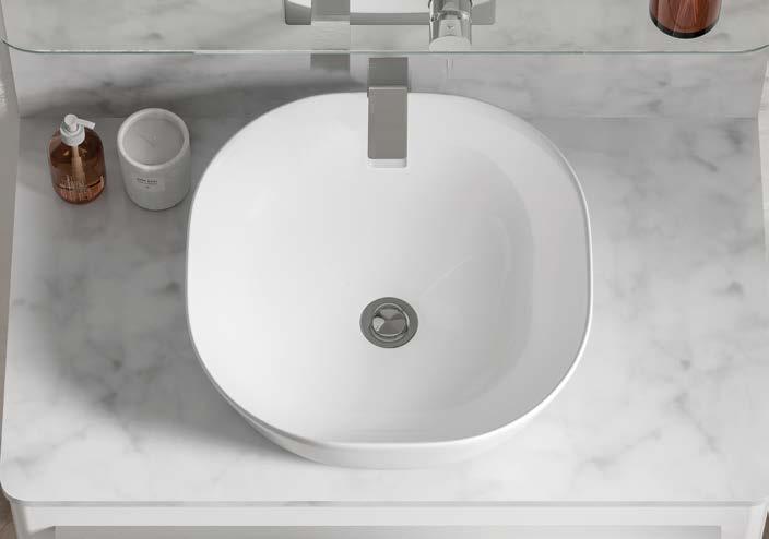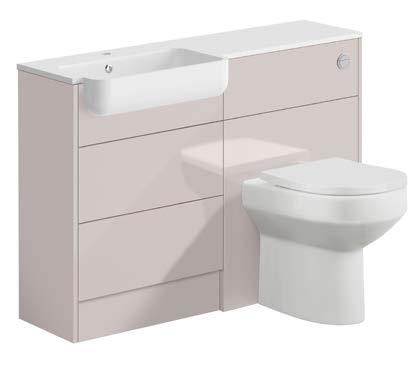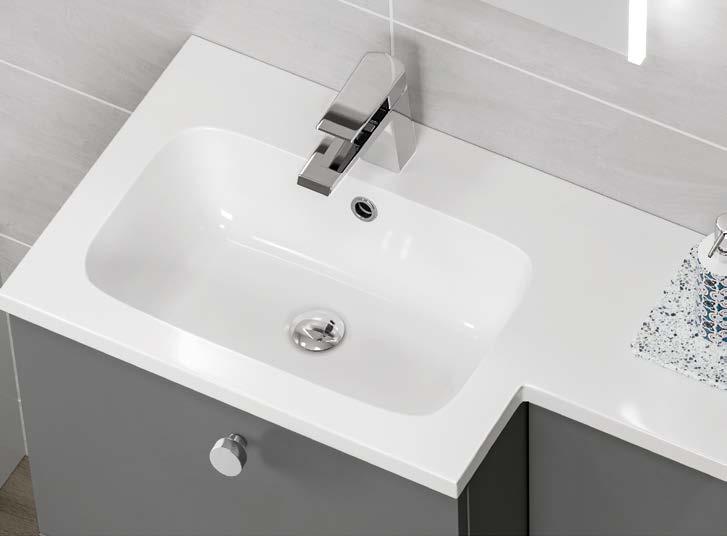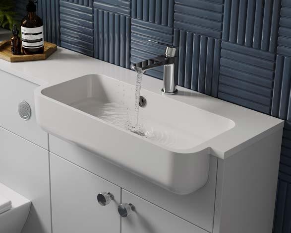 The Lune furniture range is available in two depths, 38cm (Short Projection) & 46cm (Standard Depth), and with a choice of furniture or counter top basins featuring either one, three or no tapholes.