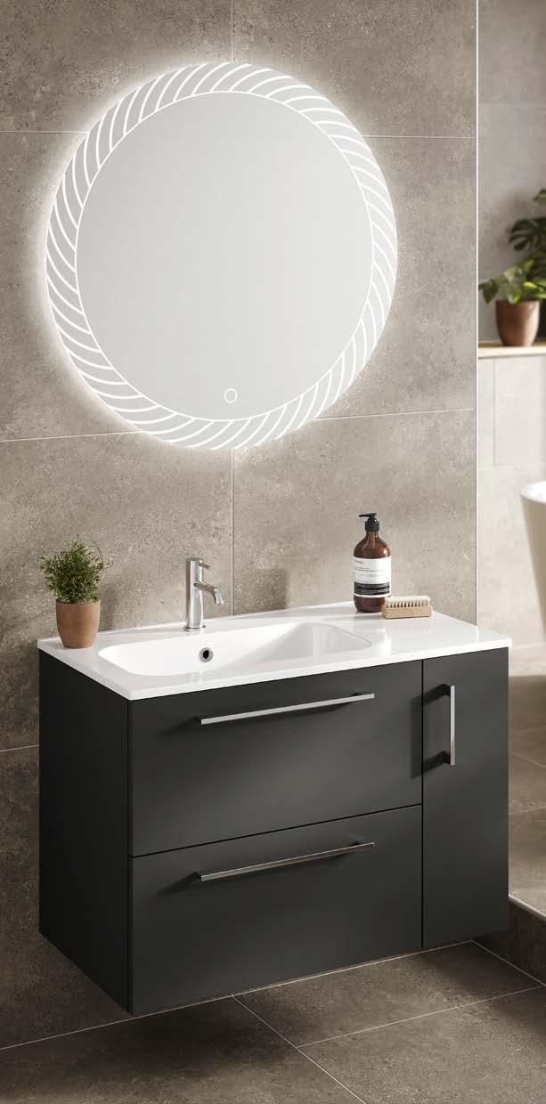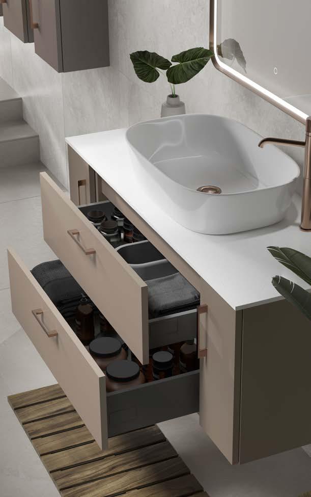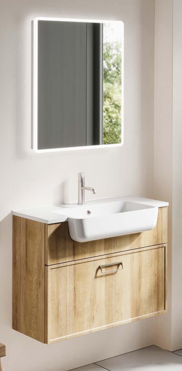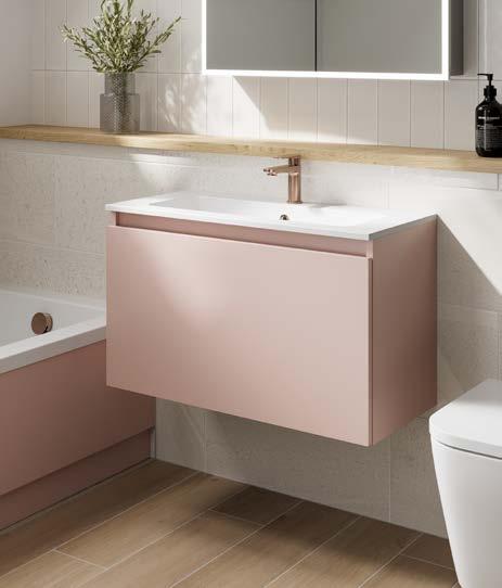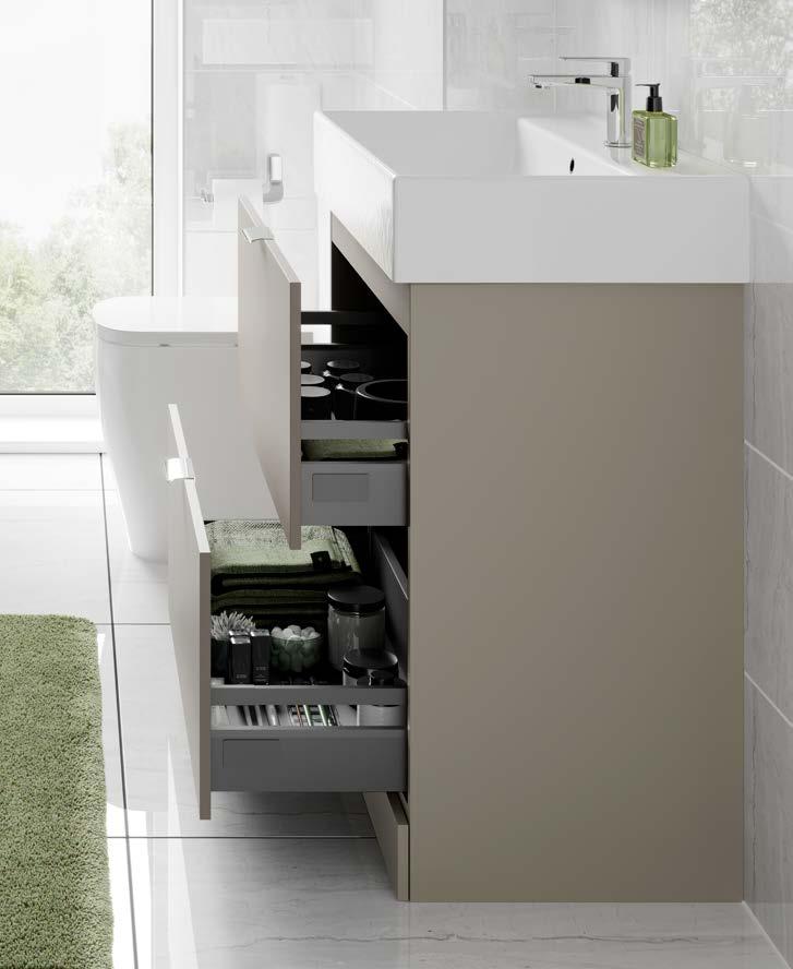 Topped with either a mineral cast basin, ceramic basin or solid surface worktop, it’s available in 60, 80 and 120cm widths and seven stunning colours bringing choice and true elegance to any bathroom design.
